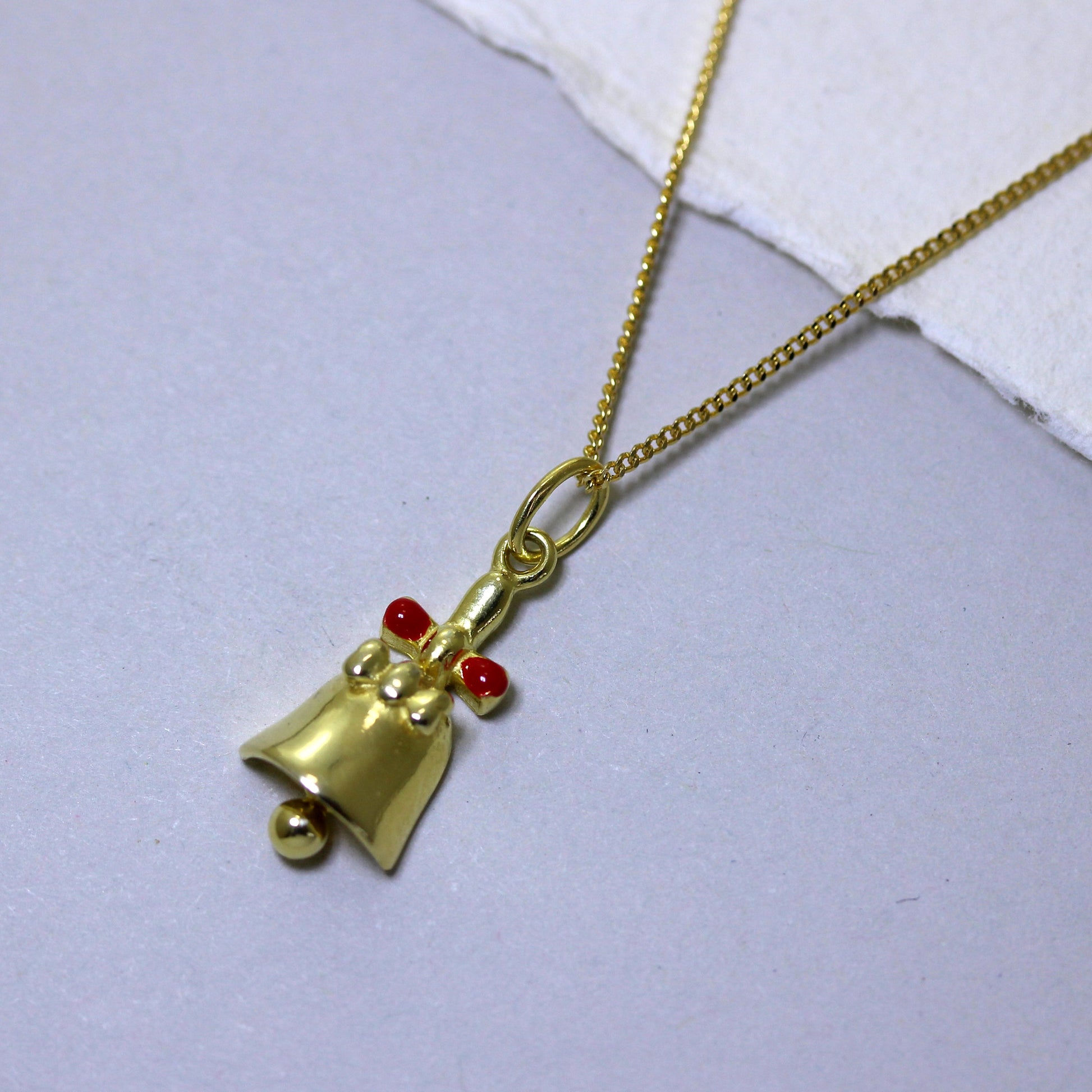 Collier Jingle Bell en argent sterling plaqué or - 14 à 32 pouces