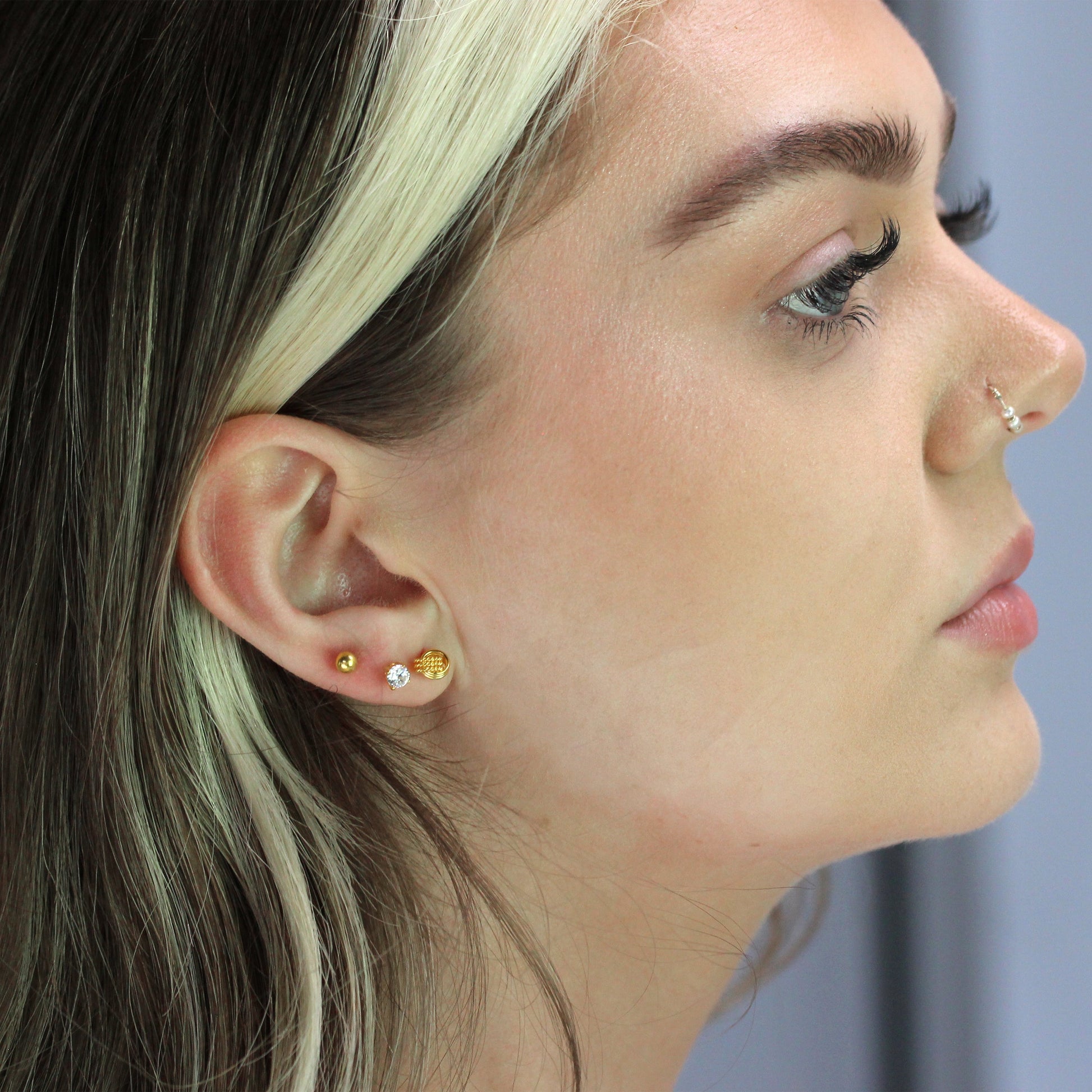 Ensemble de boucles d'oreilles à tige en argent sterling plaqué or avec nœud et boule en zircone cubique