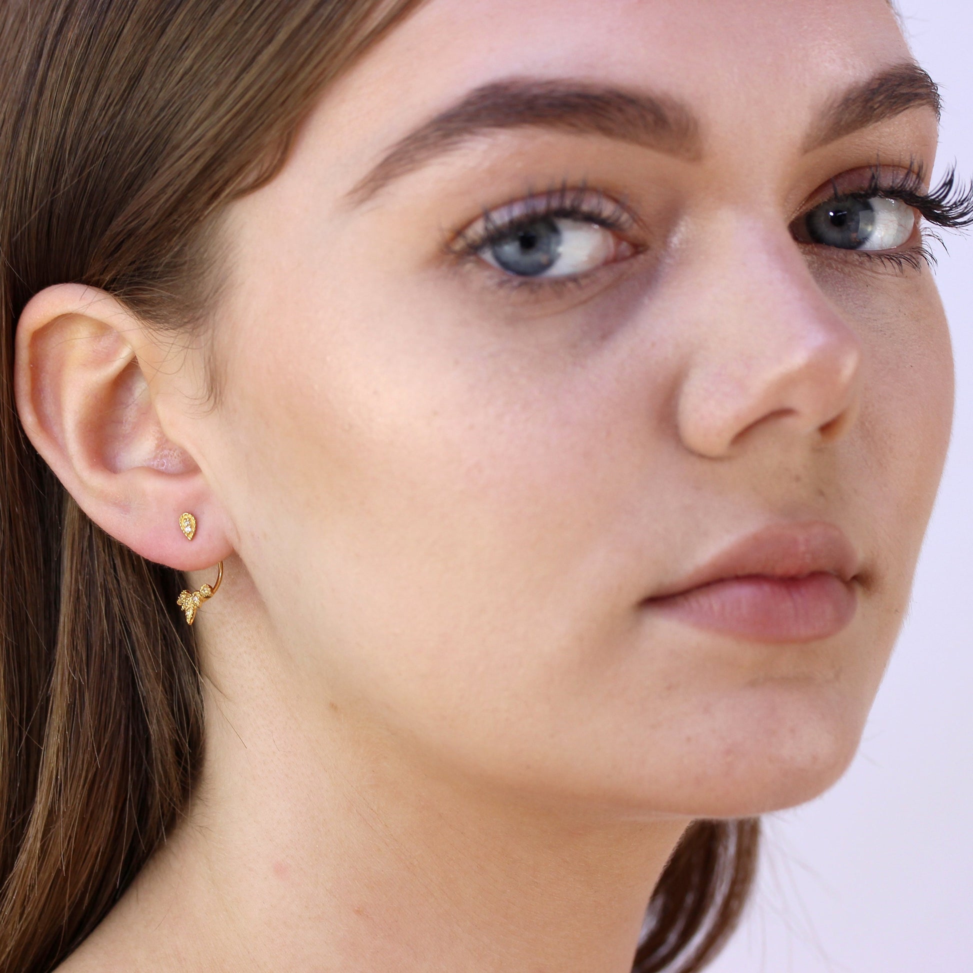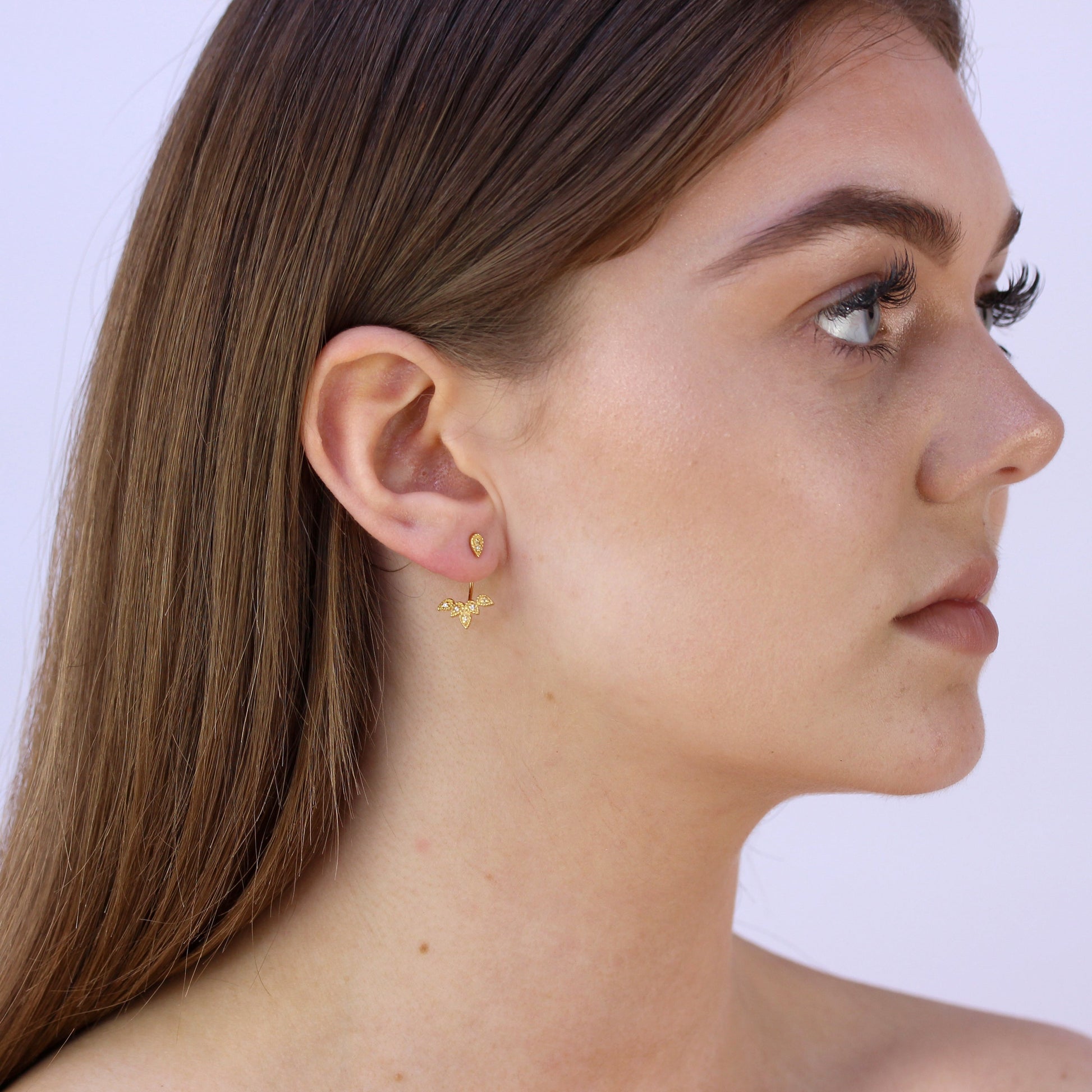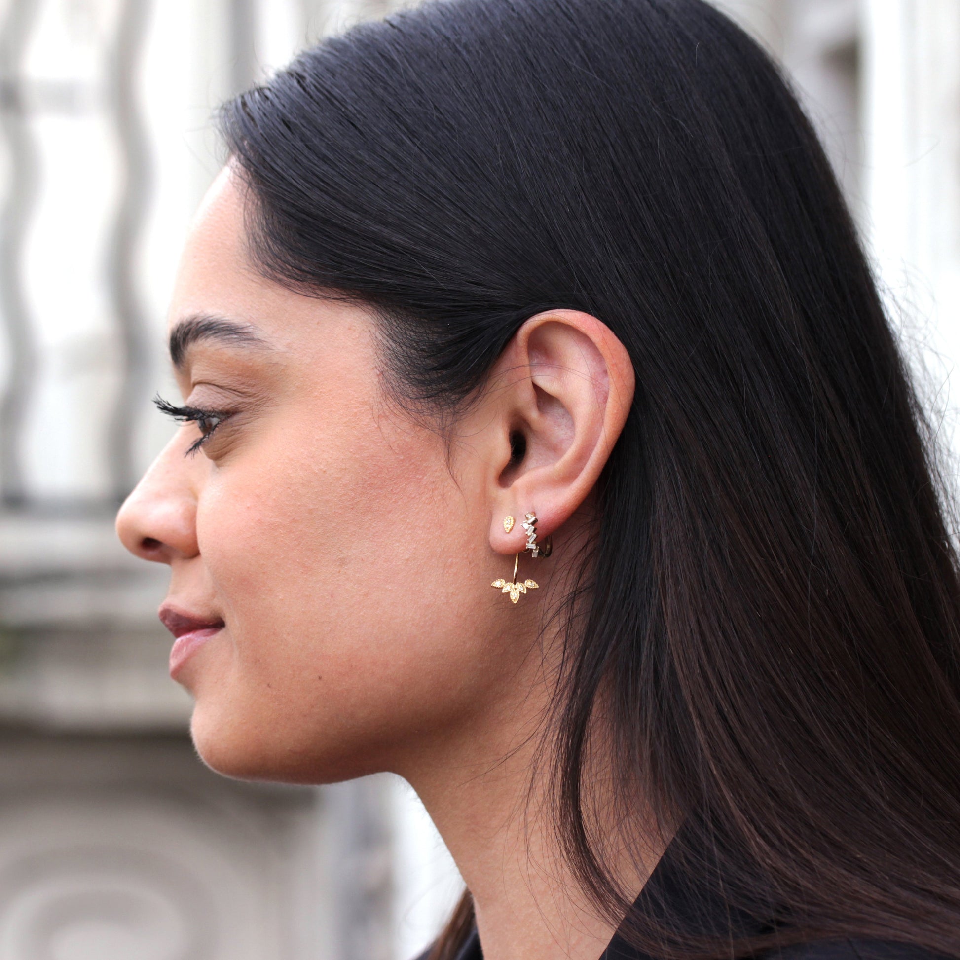 Boucles d'oreilles à tige en argent sterling plaqué or avec feuilles et zircones cubiques