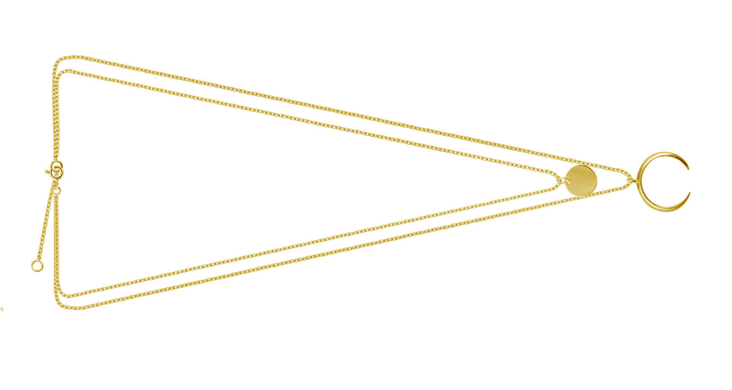 Collier avec pendentif croissant de lune en argent sterling plaqué or et double couche