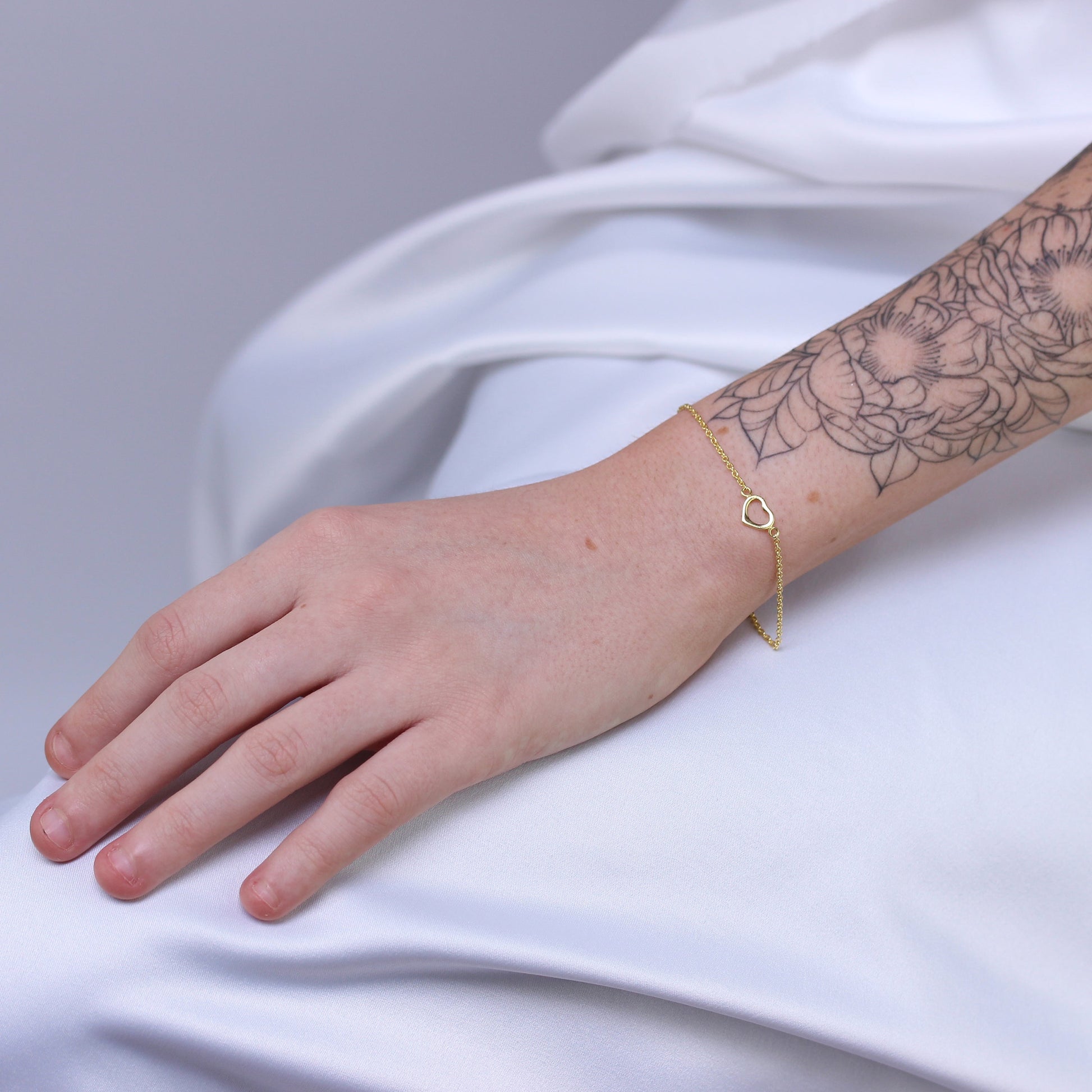 Bracelet chaîne rolo en argent sterling plaqué or avec cœur ouvert