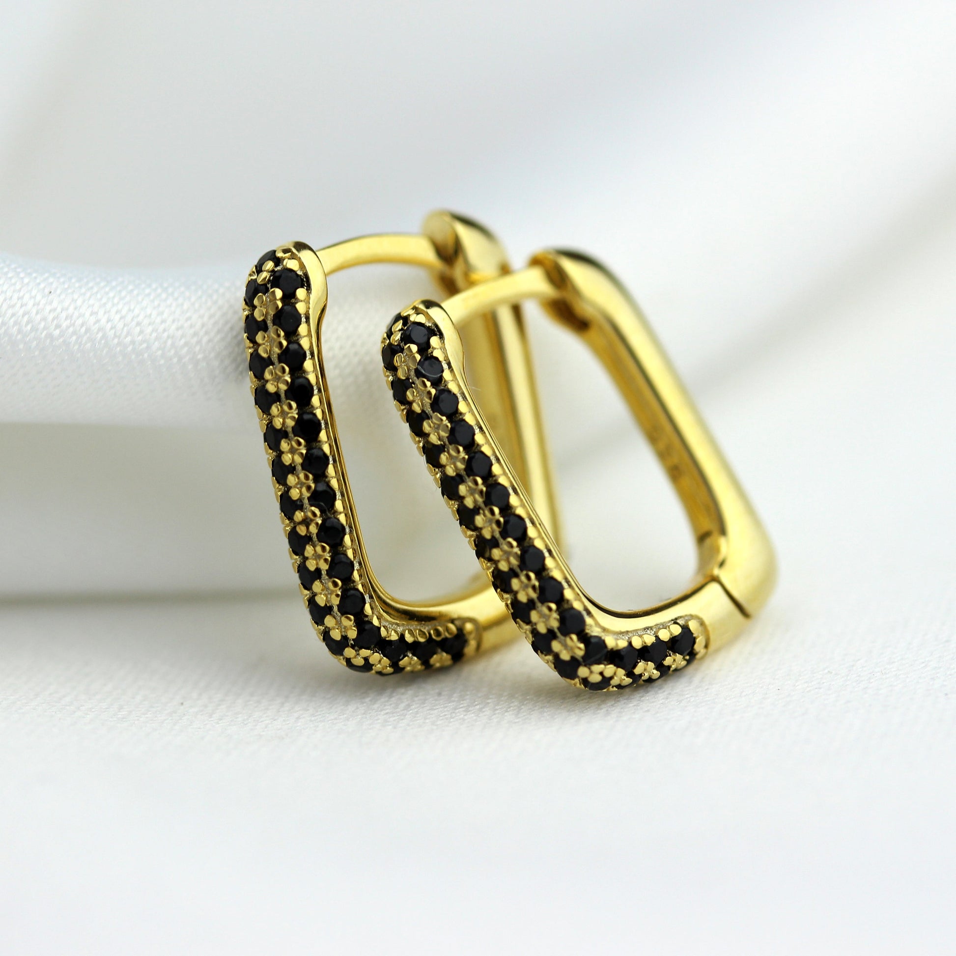 Boucles d'oreilles créoles ovales en argent sterling plaqué or avec zircones cubiques noires de 15 mm