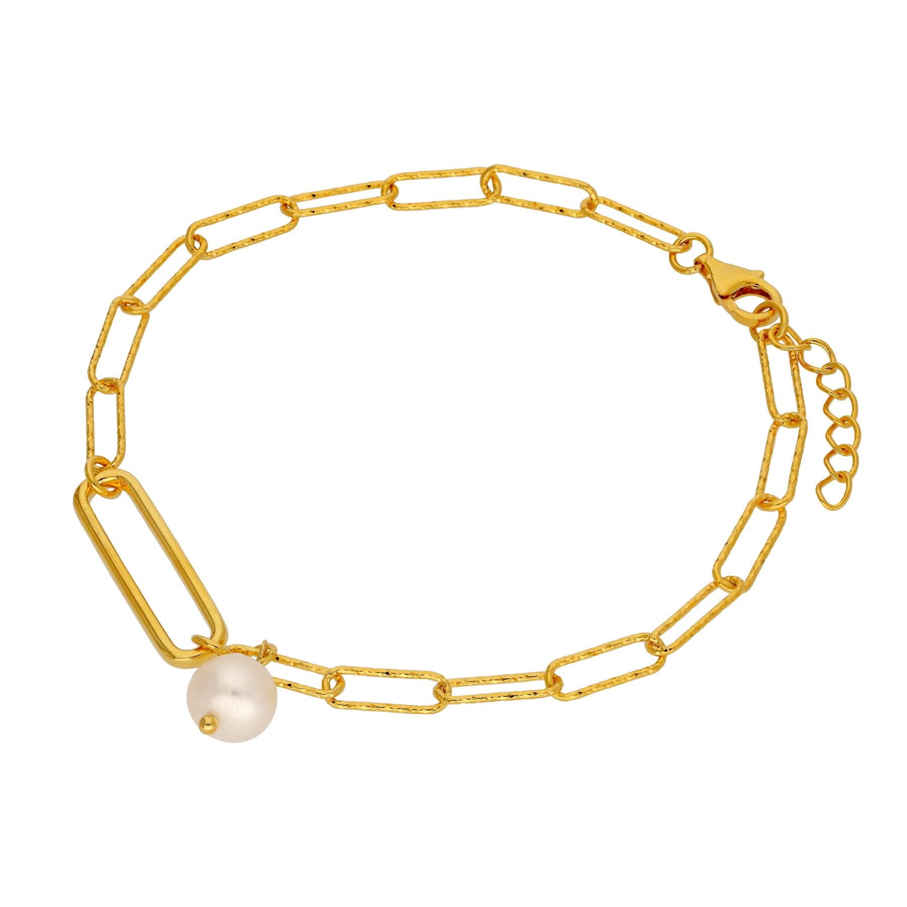 Bracelet à longs maillons en argent sterling plaqué or et perles