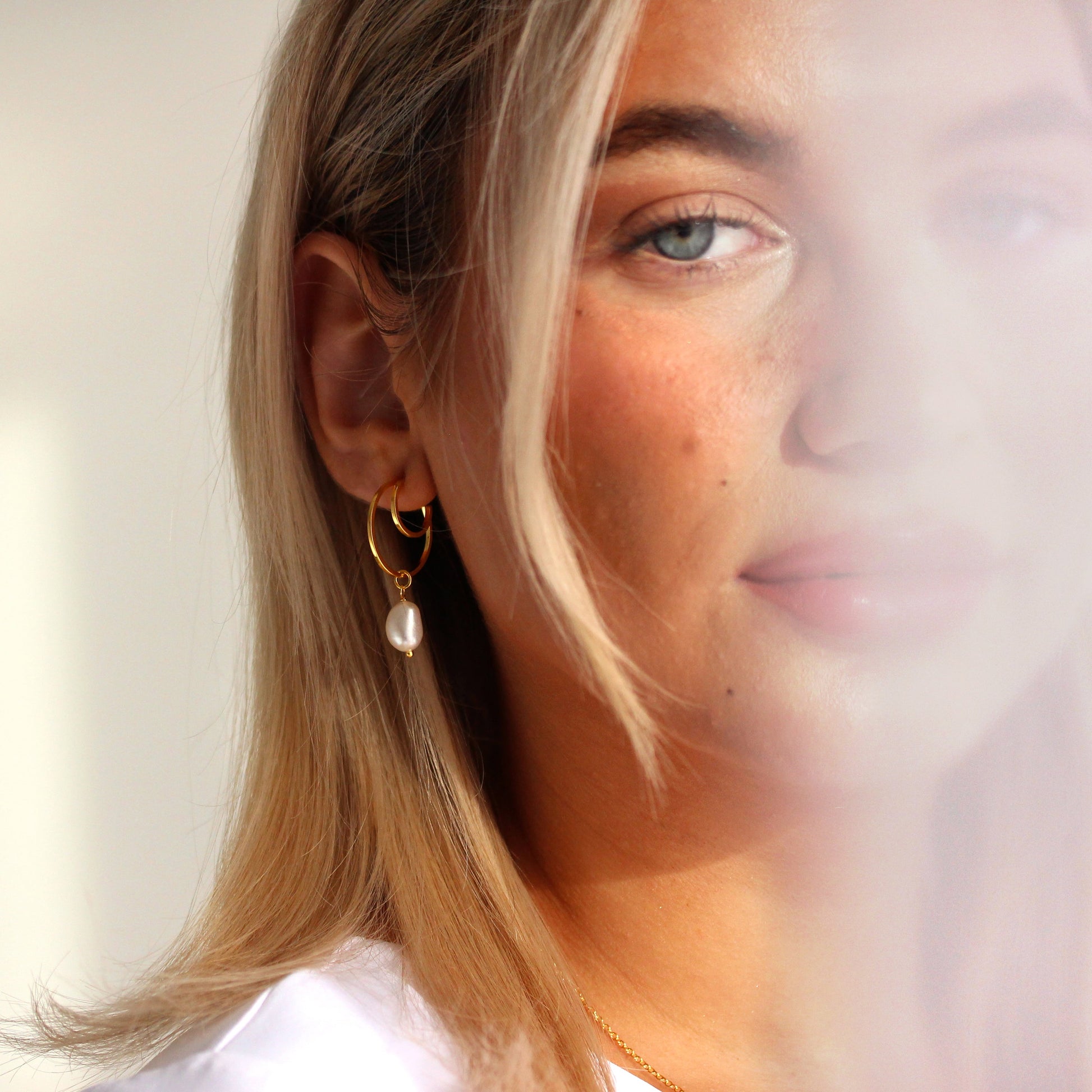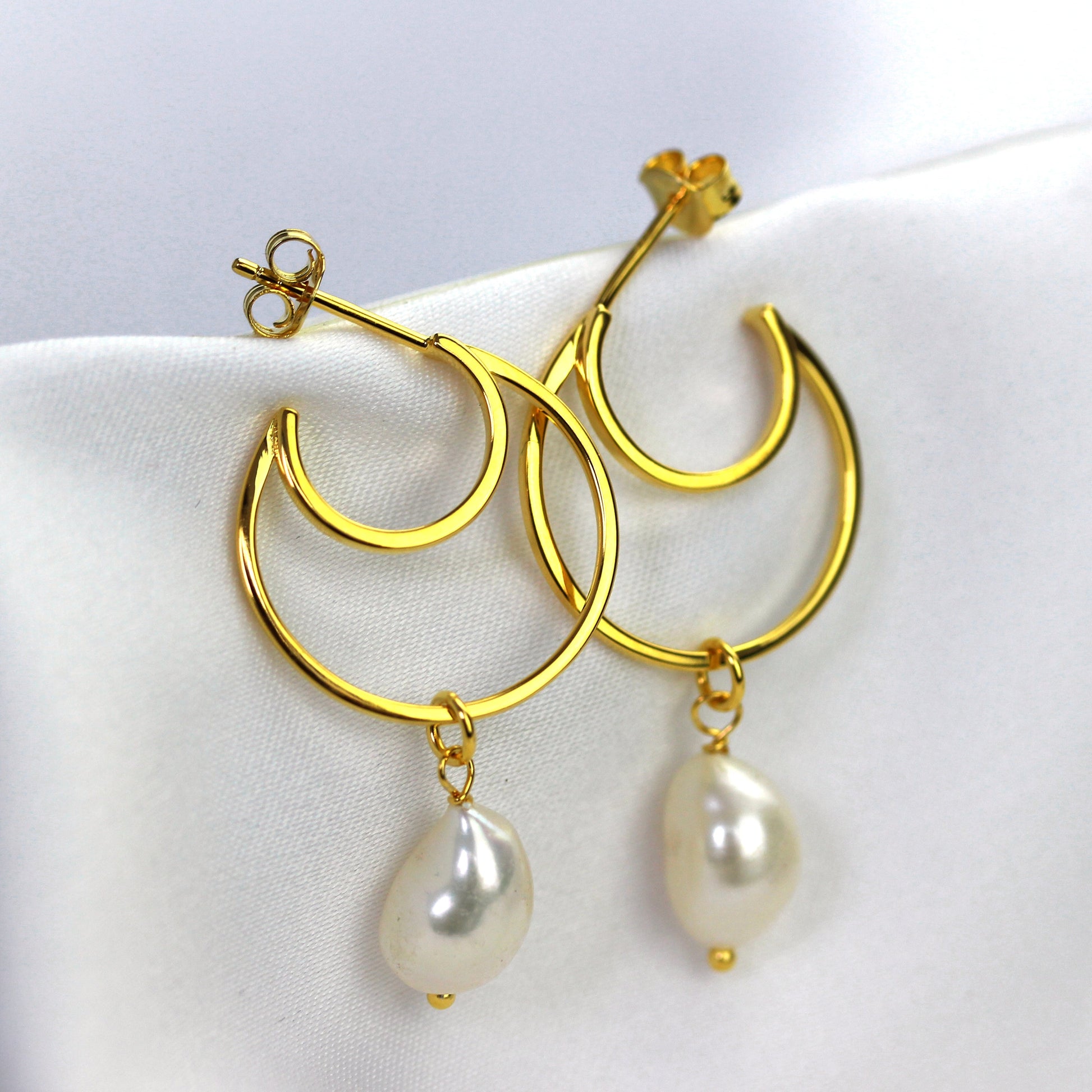 Boucles d'oreilles créoles en argent sterling plaqué or avec perles