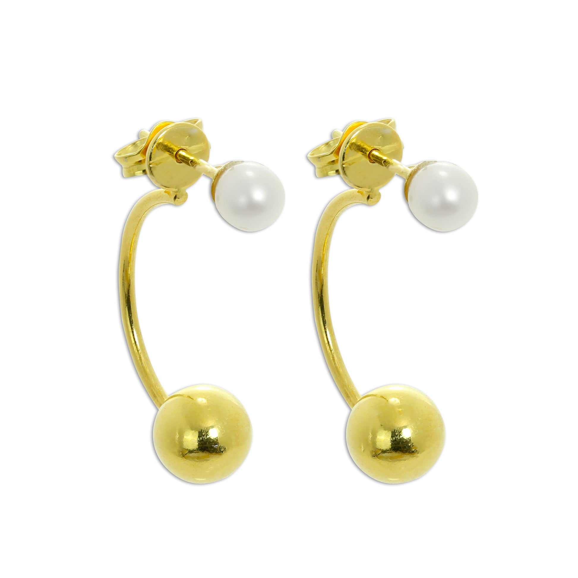 Boucles d'oreilles créoles et boules en argent sterling plaqué or avec perles