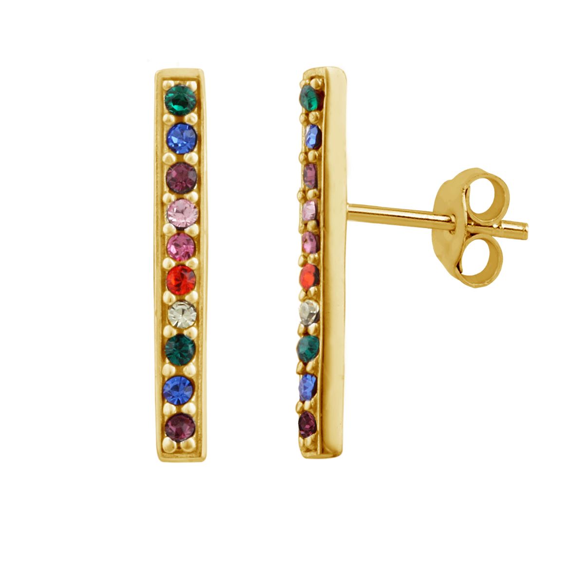 Boucles d'oreilles à tige en argent sterling plaqué or avec cristaux CZ arc-en-ciel
