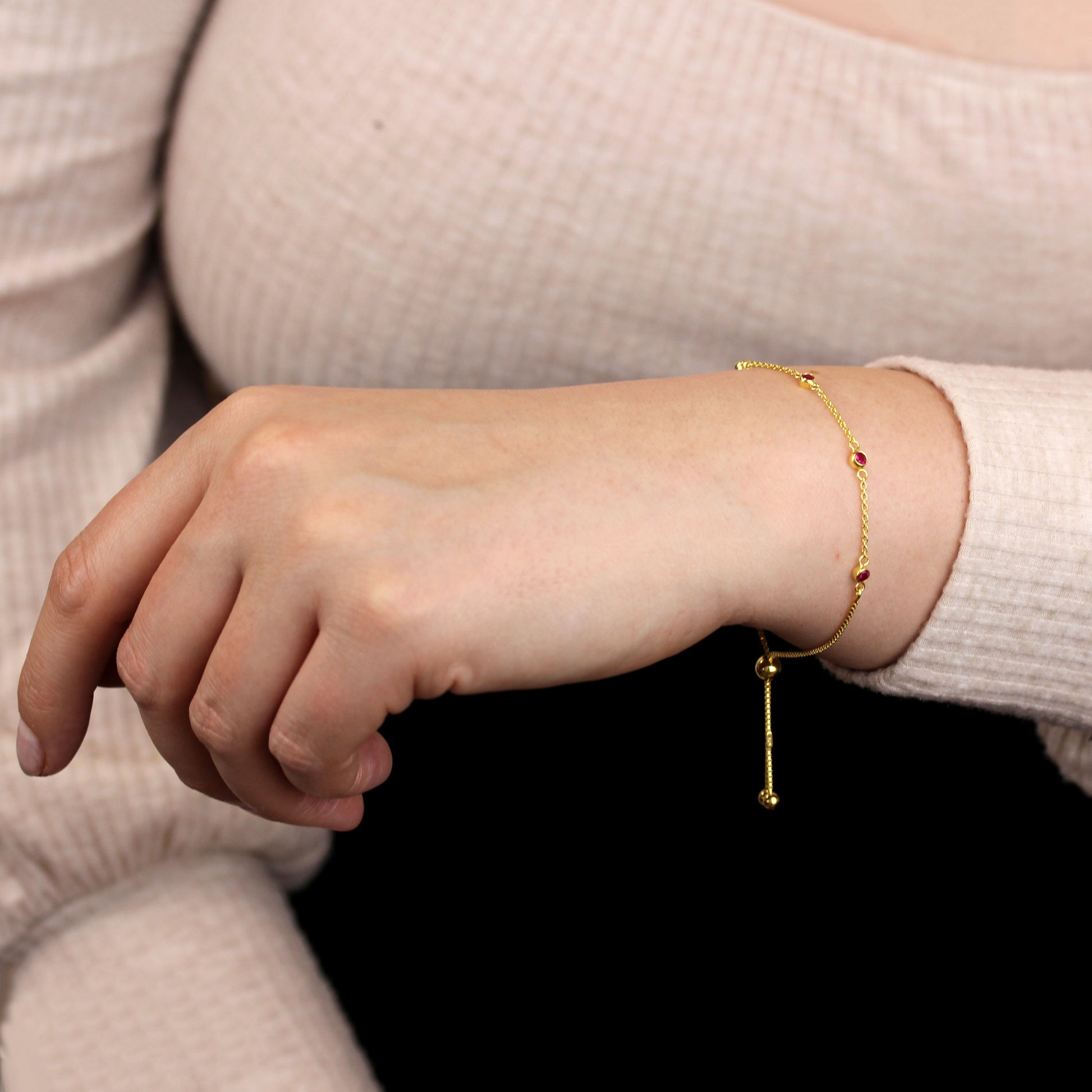 Bracelet réglable en argent sterling plaqué or avec rubis et zircones cubiques