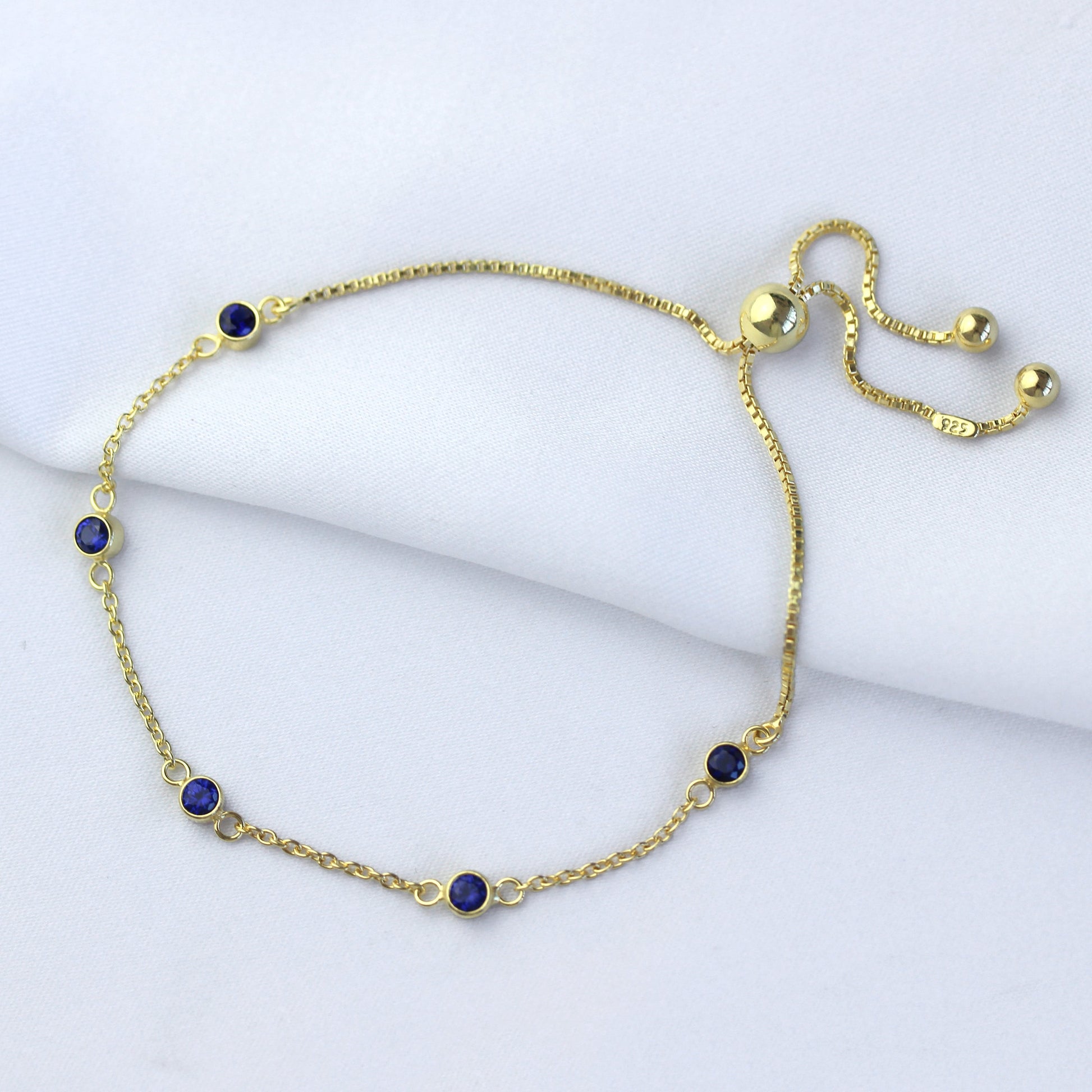Bracelet réglable en argent sterling plaqué or avec saphir et zircone cubique