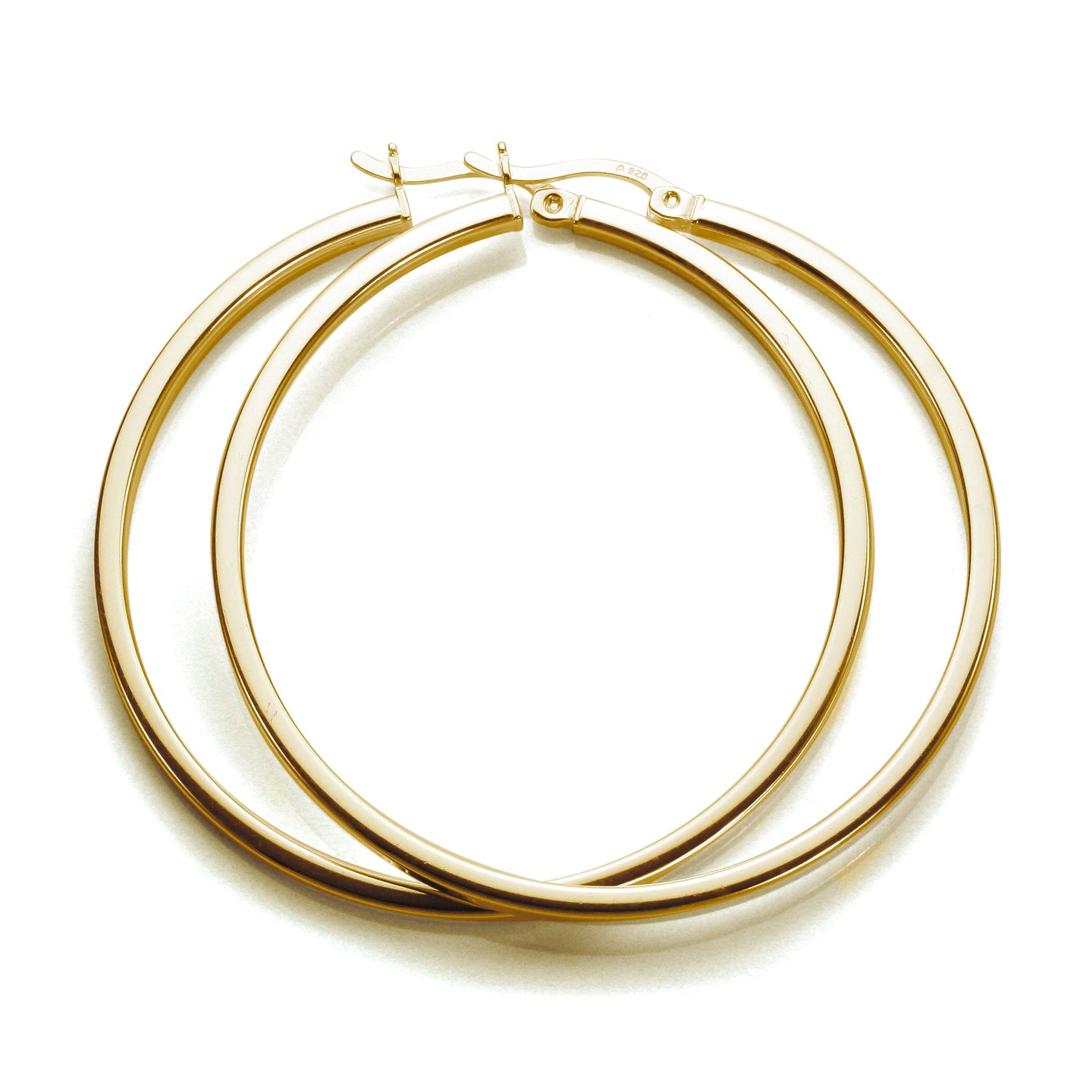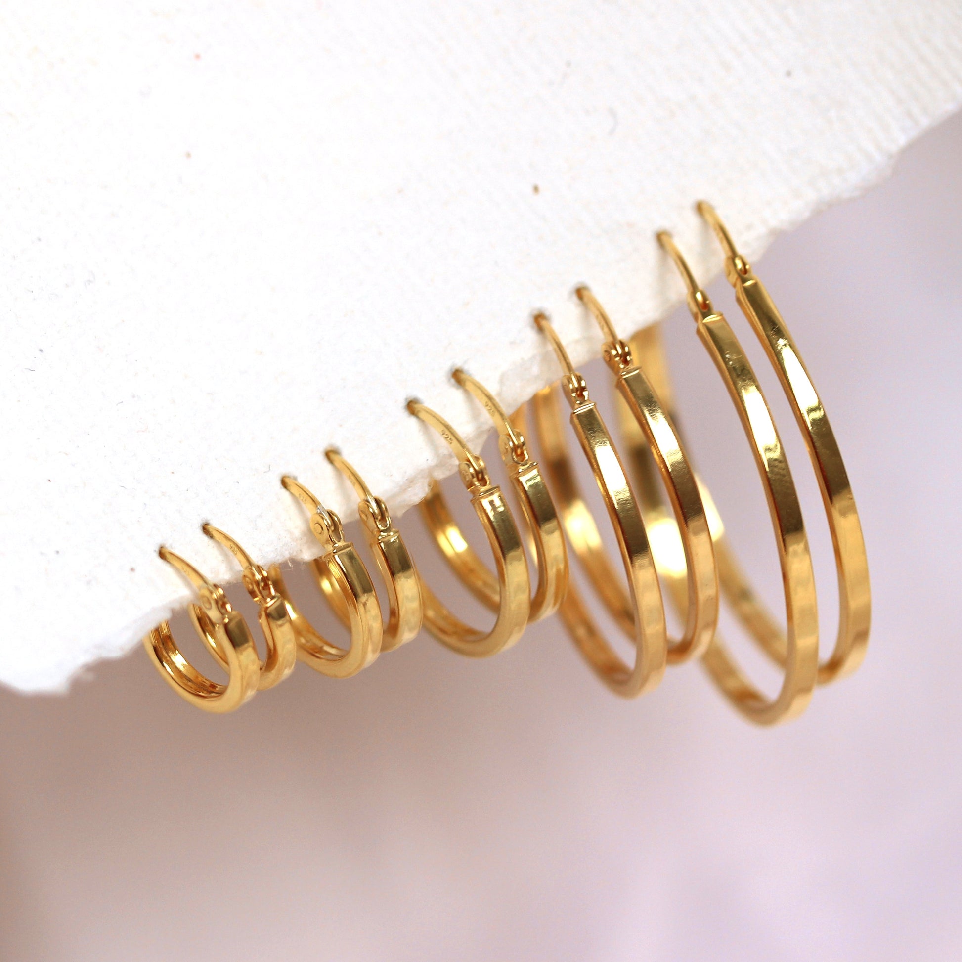 Boucles d'oreilles créoles carrées en argent sterling plaqué or 12-40 mm