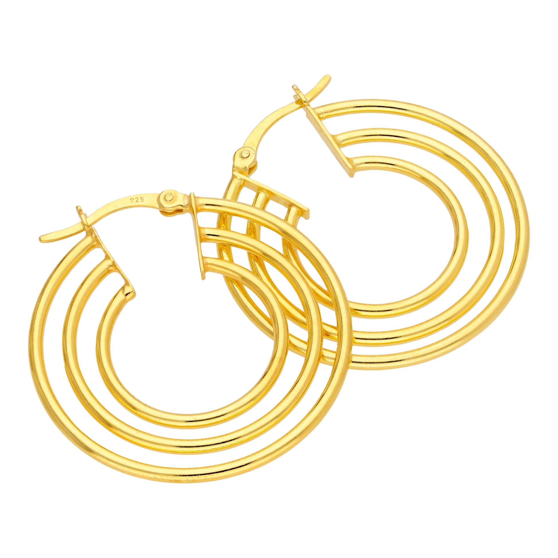 Boucles d'oreilles créoles triple cercle en argent sterling plaqué or