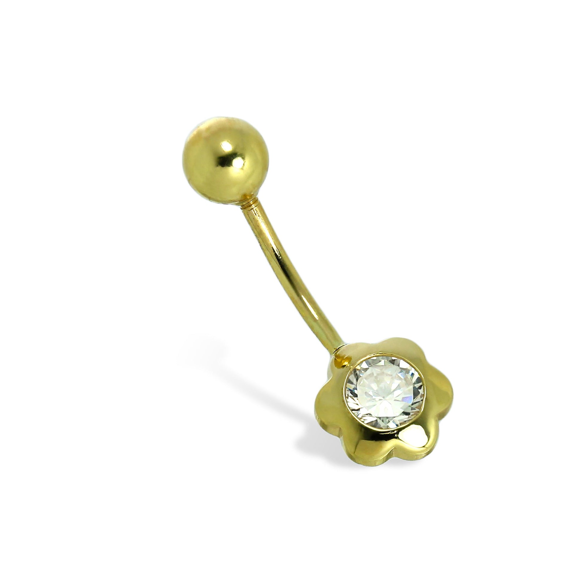 Piercing nombril en or 9 carats et cristal CZ transparent de 4 mm avec boule en forme de fleur