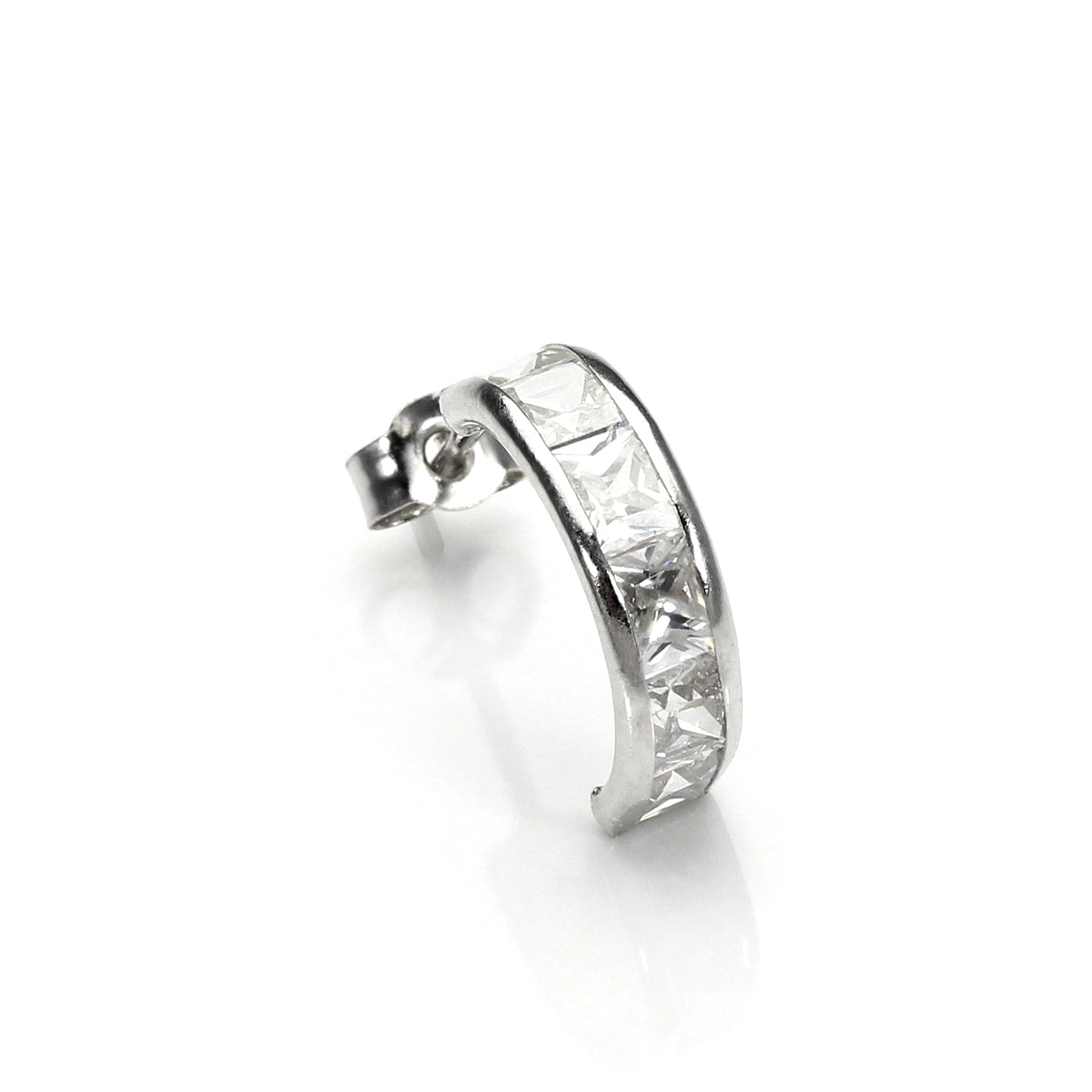 Boucle d'oreille simple à tige en or blanc 9 carats avec zircones cubiques transparents pour homme