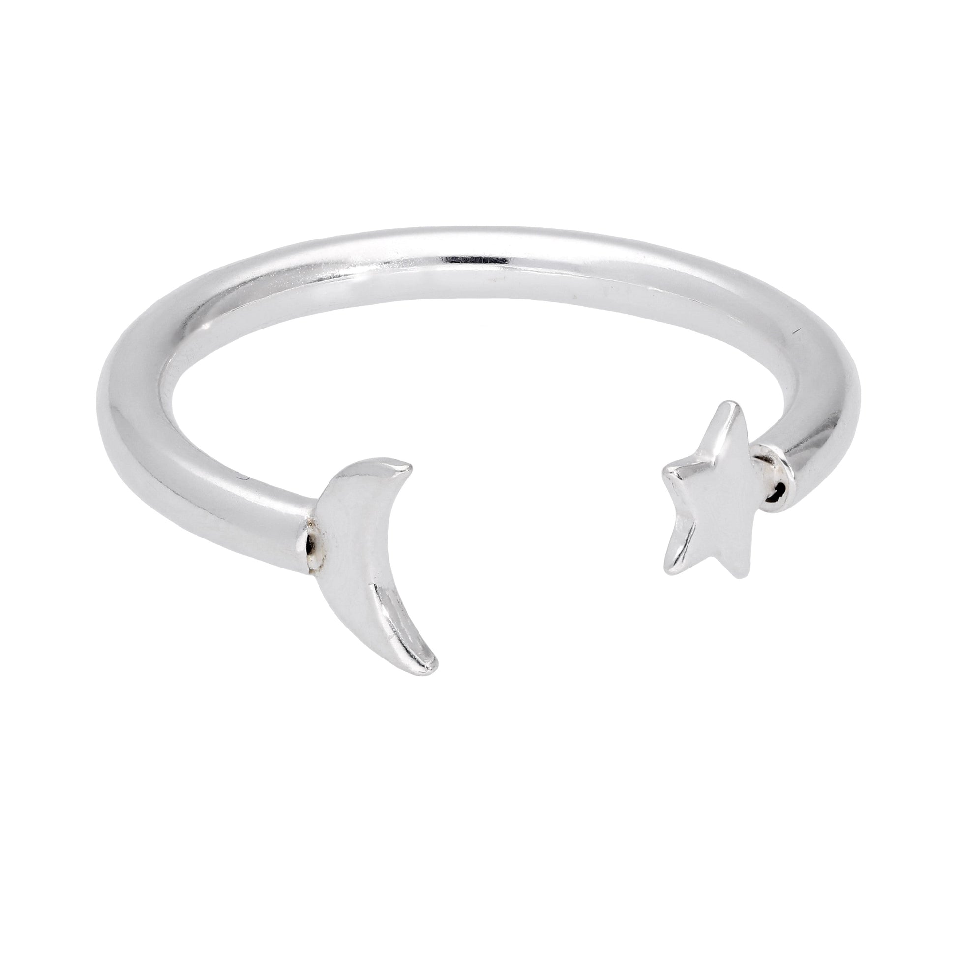 Bague réglable ouverte en argent sterling avec lune et étoile