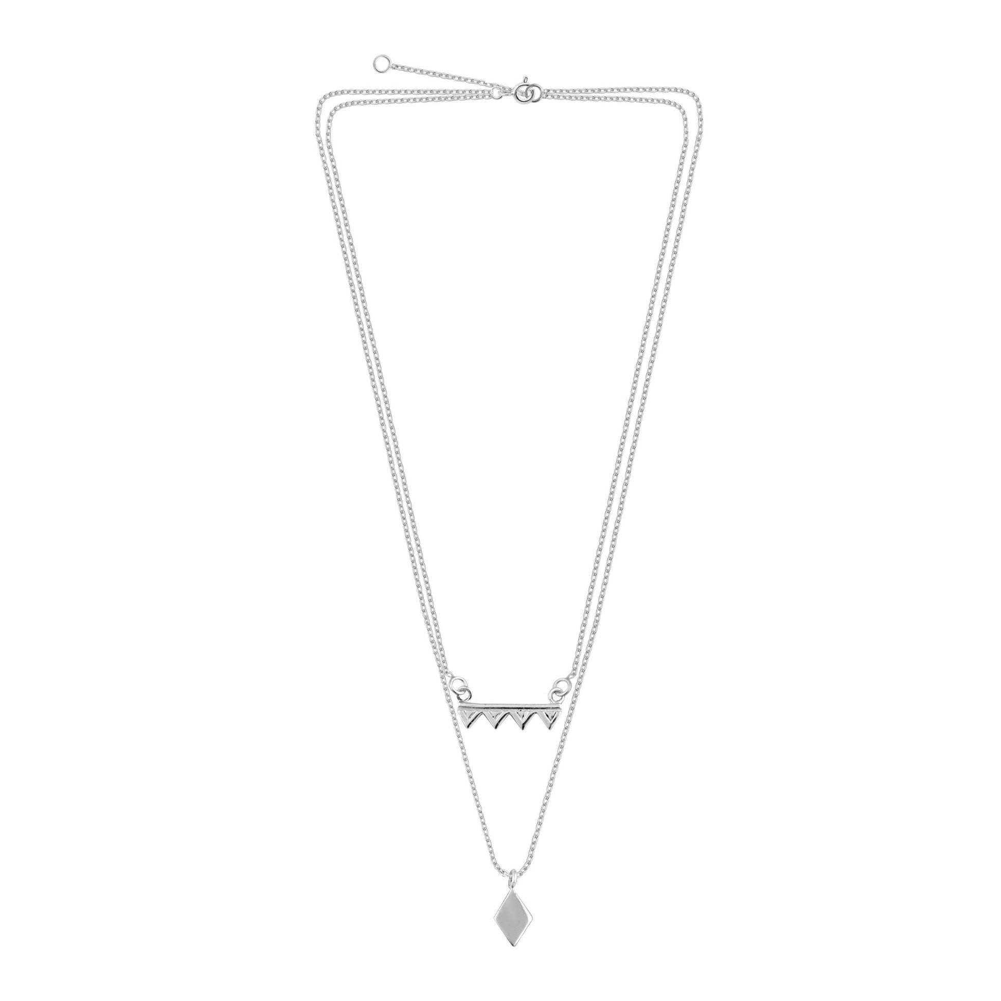 Collier en argent sterling à double couche avec diamants et triangle géométrique