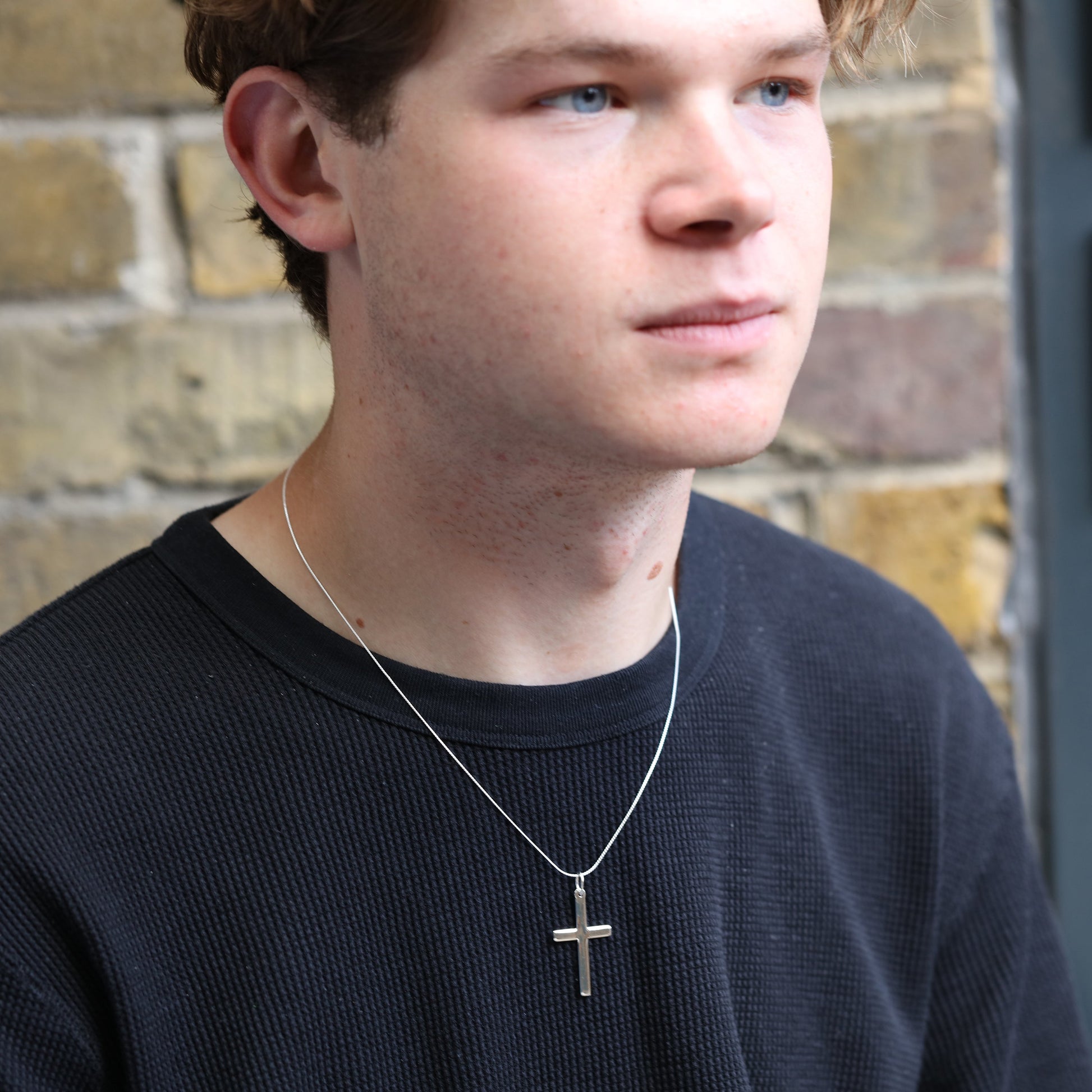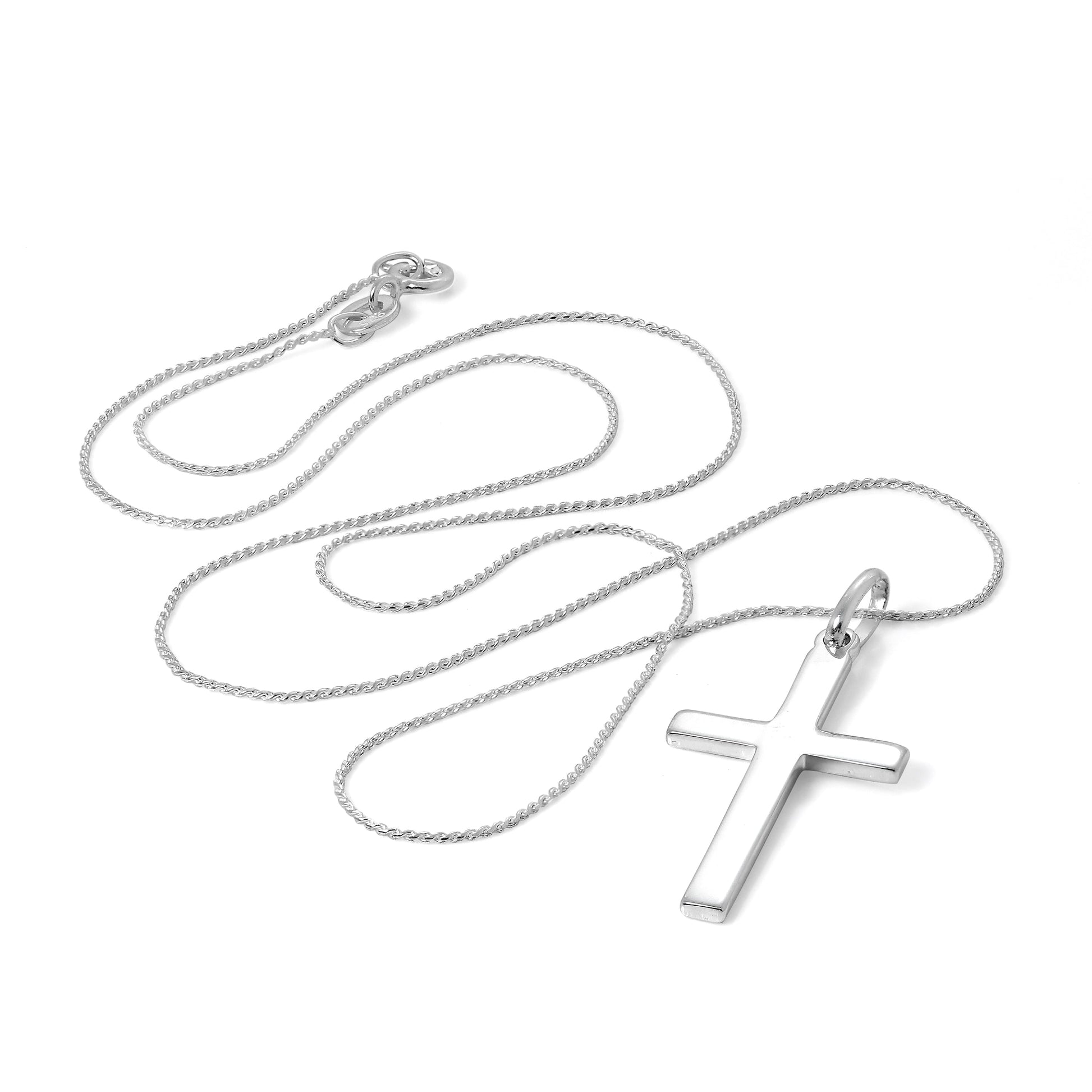 Grand collier avec pendentif croix en argent sterling uni de 40 à 55 cm