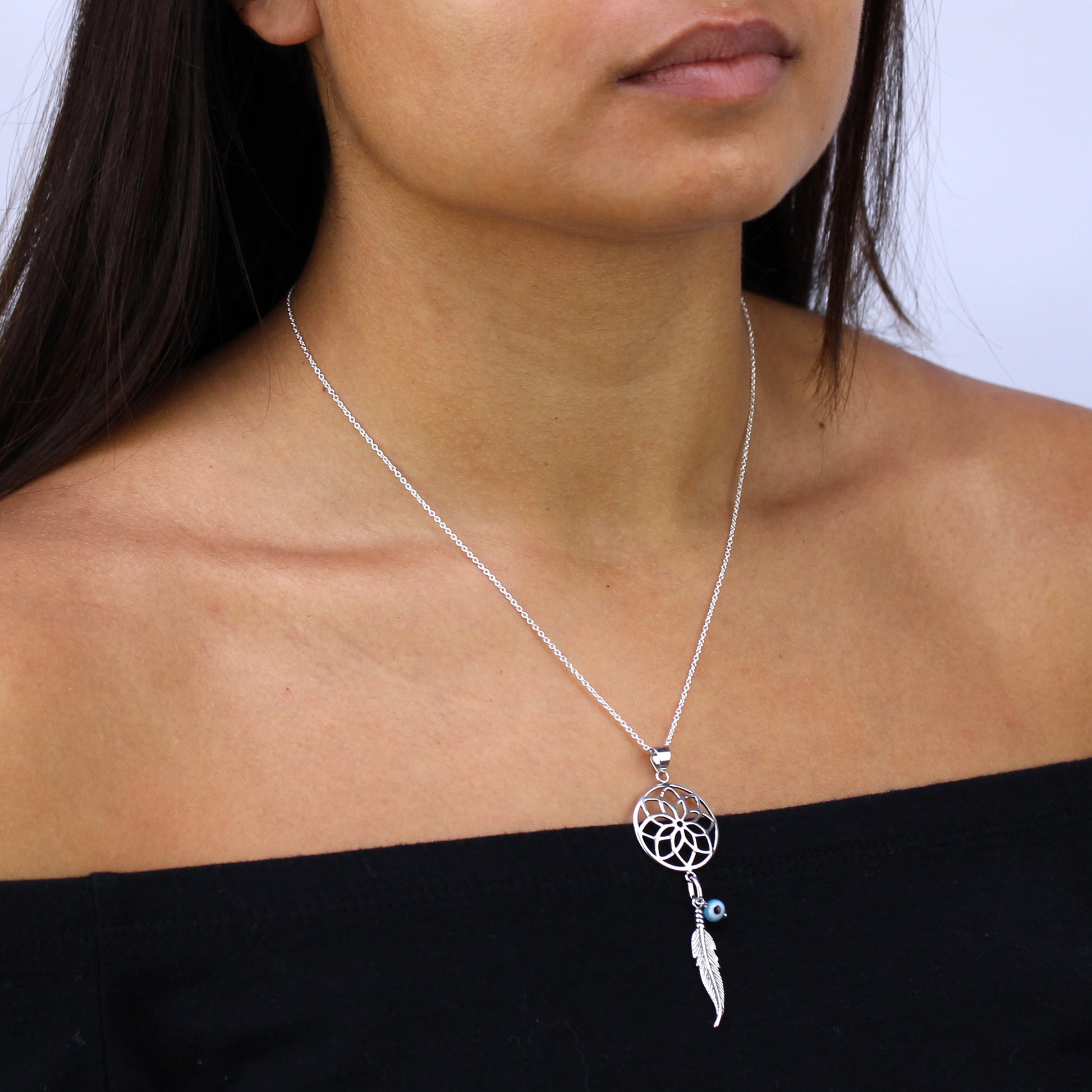 Grand collier pendentif attrape-rêves en argent sterling