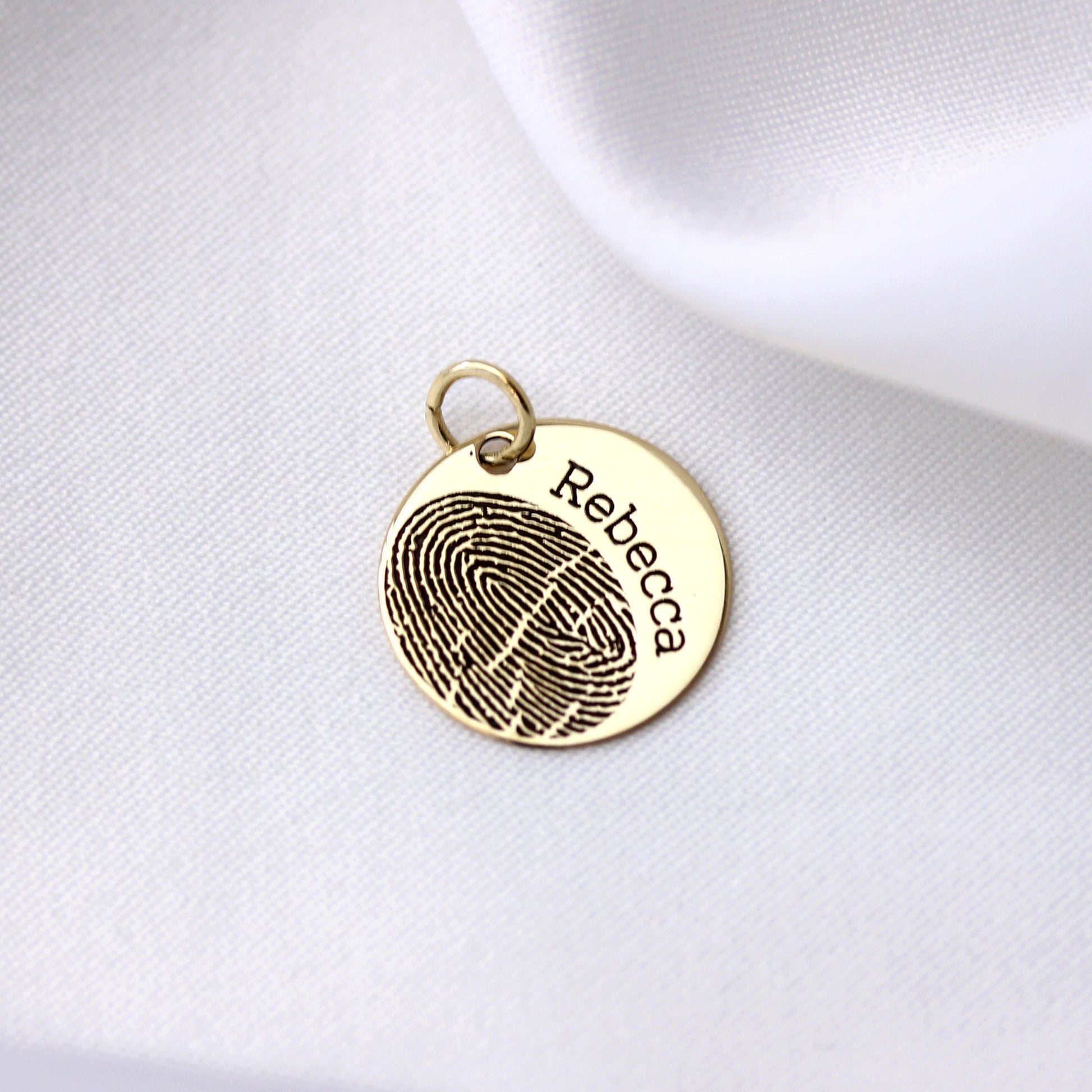 Breloque ronde personnalisée en or 9 carats avec empreinte digitale