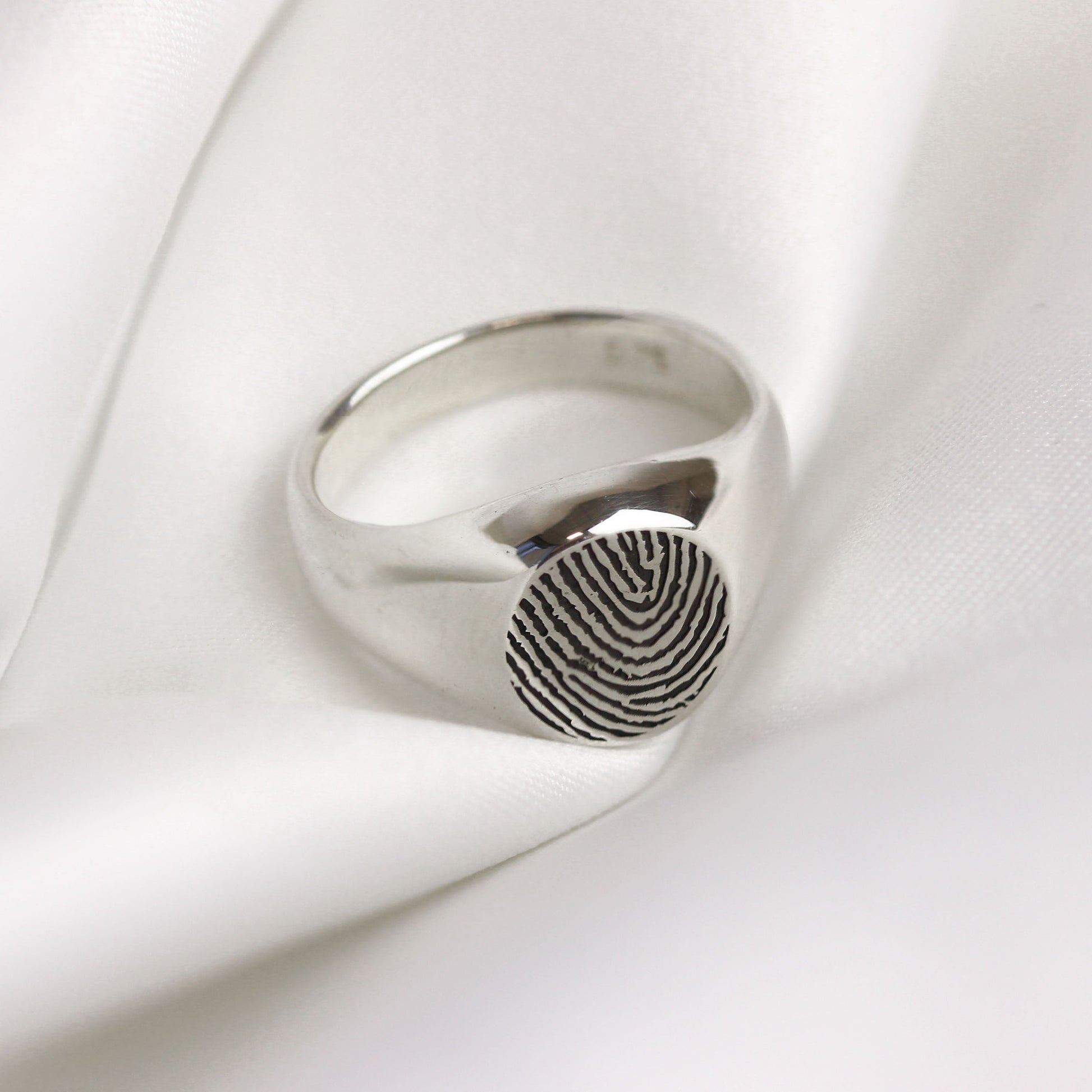 Chevalière personnalisée en argent sterling avec empreinte digitale
