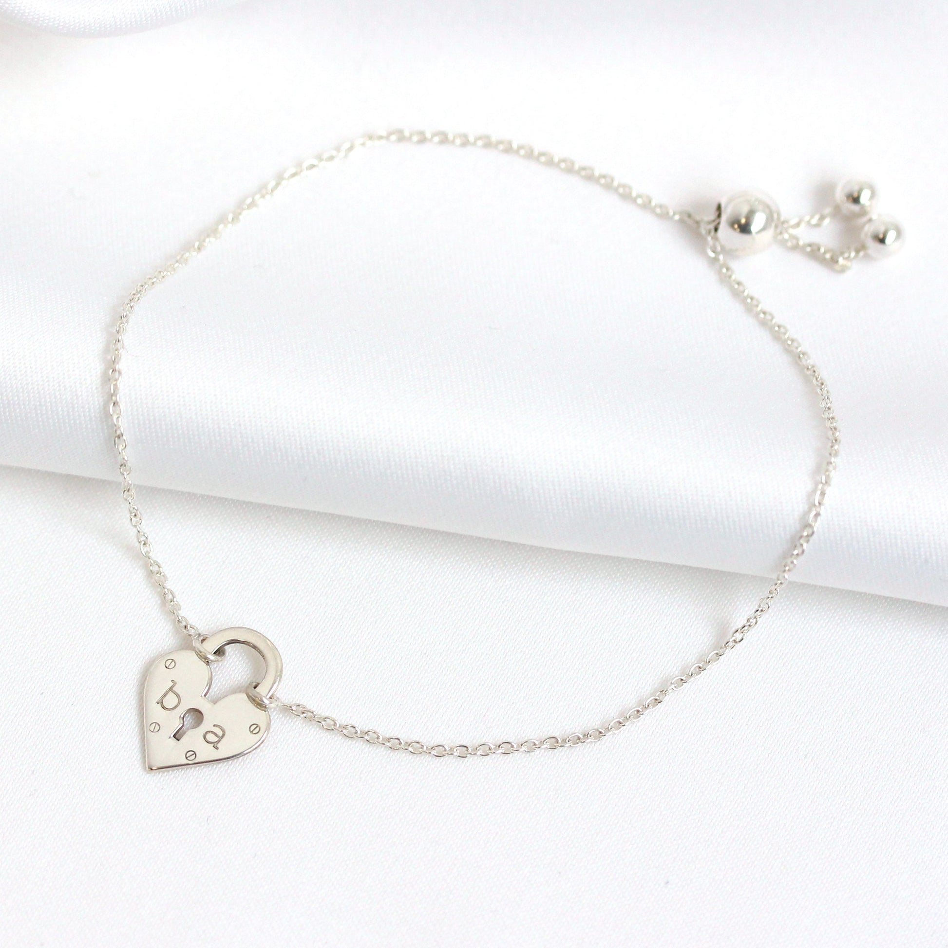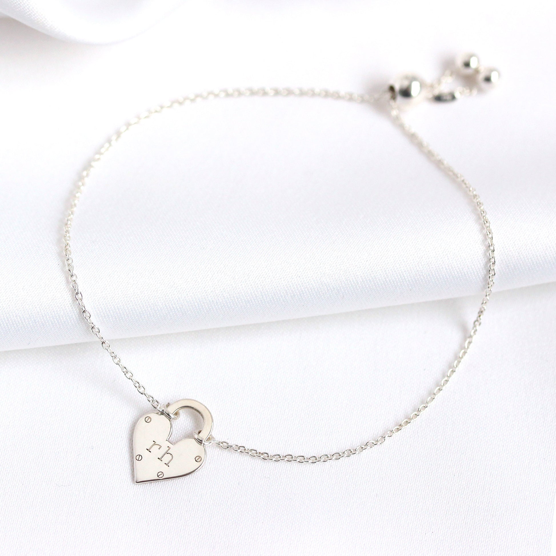 Bracelet personnalisé en argent sterling avec cadenas en forme de cœur et initiales