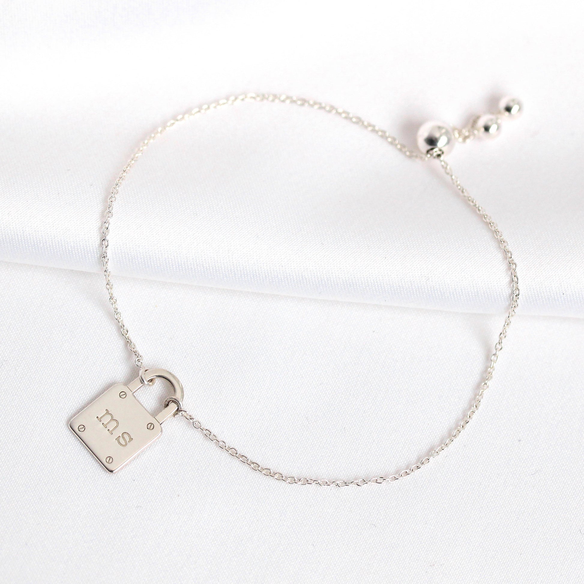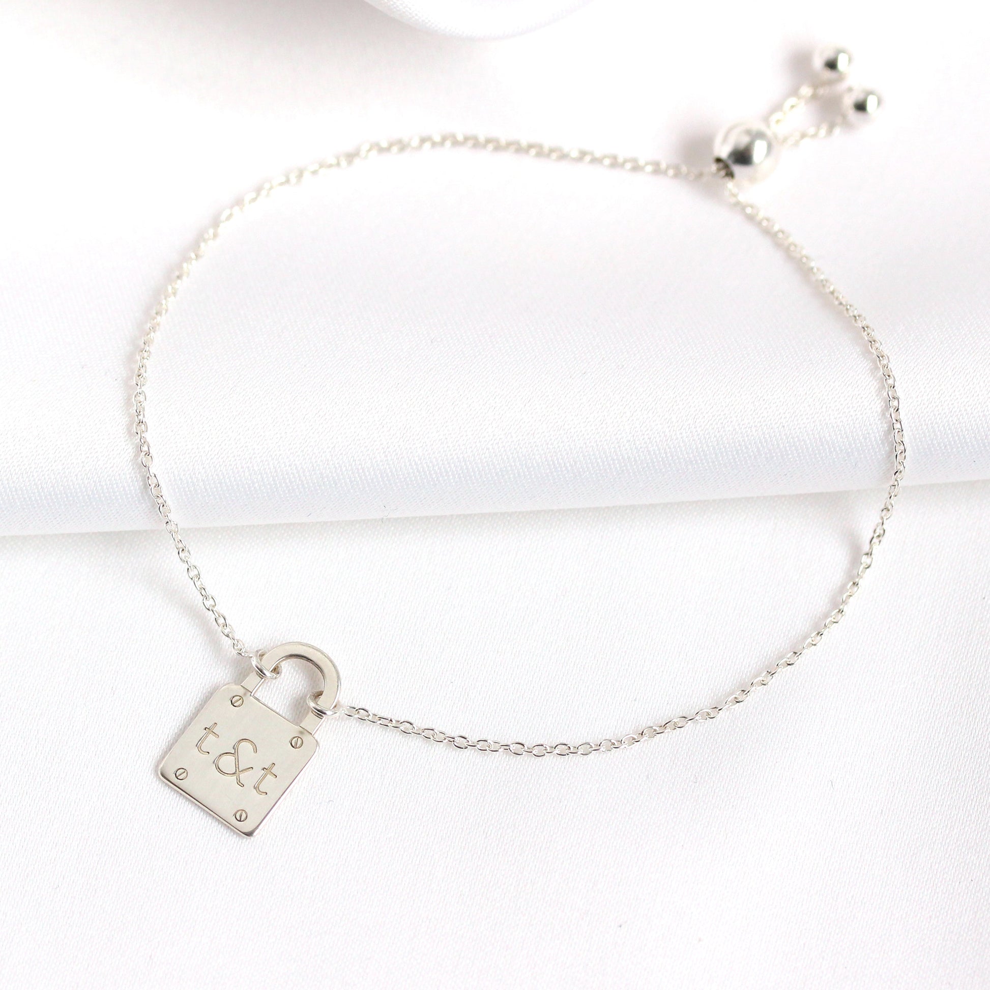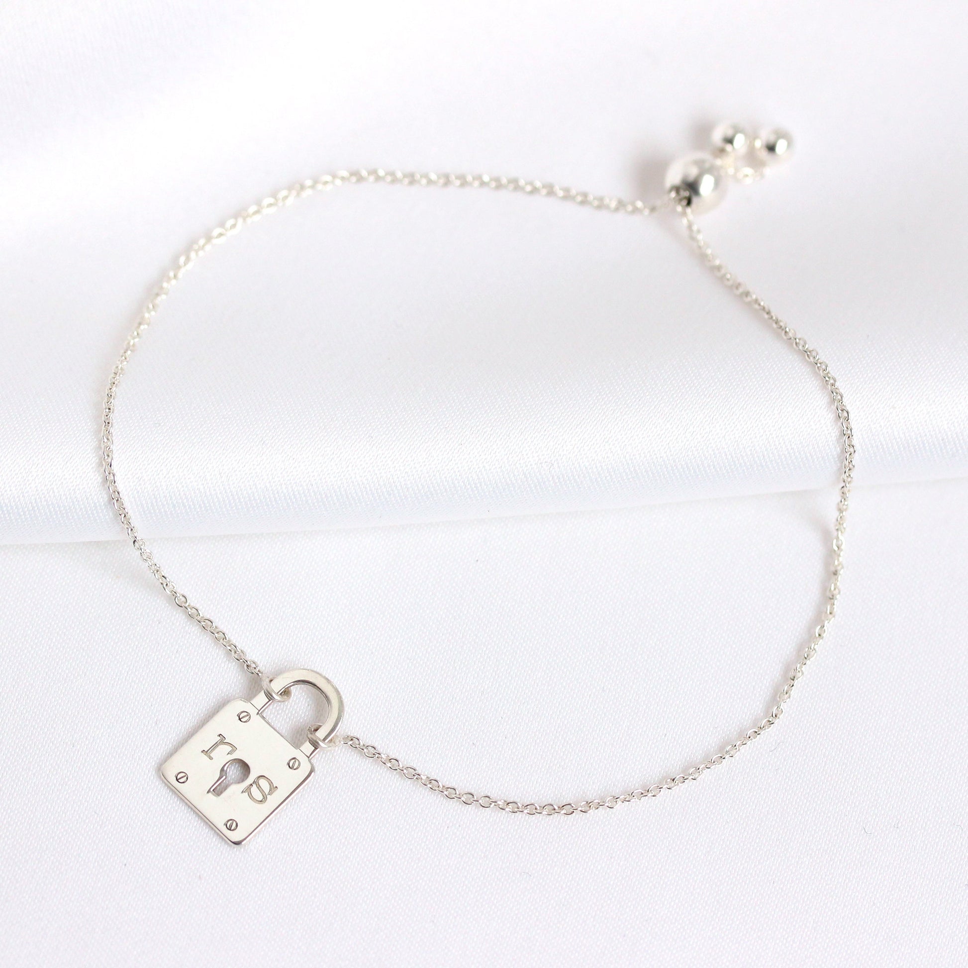 Bracelet cadenas personnalisé en argent sterling avec initiales