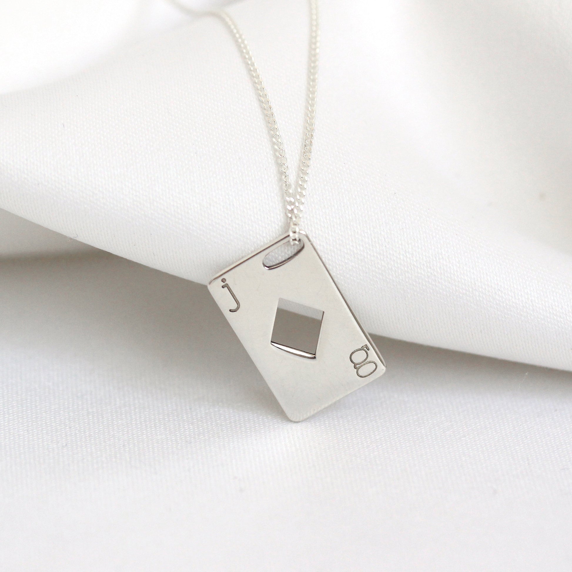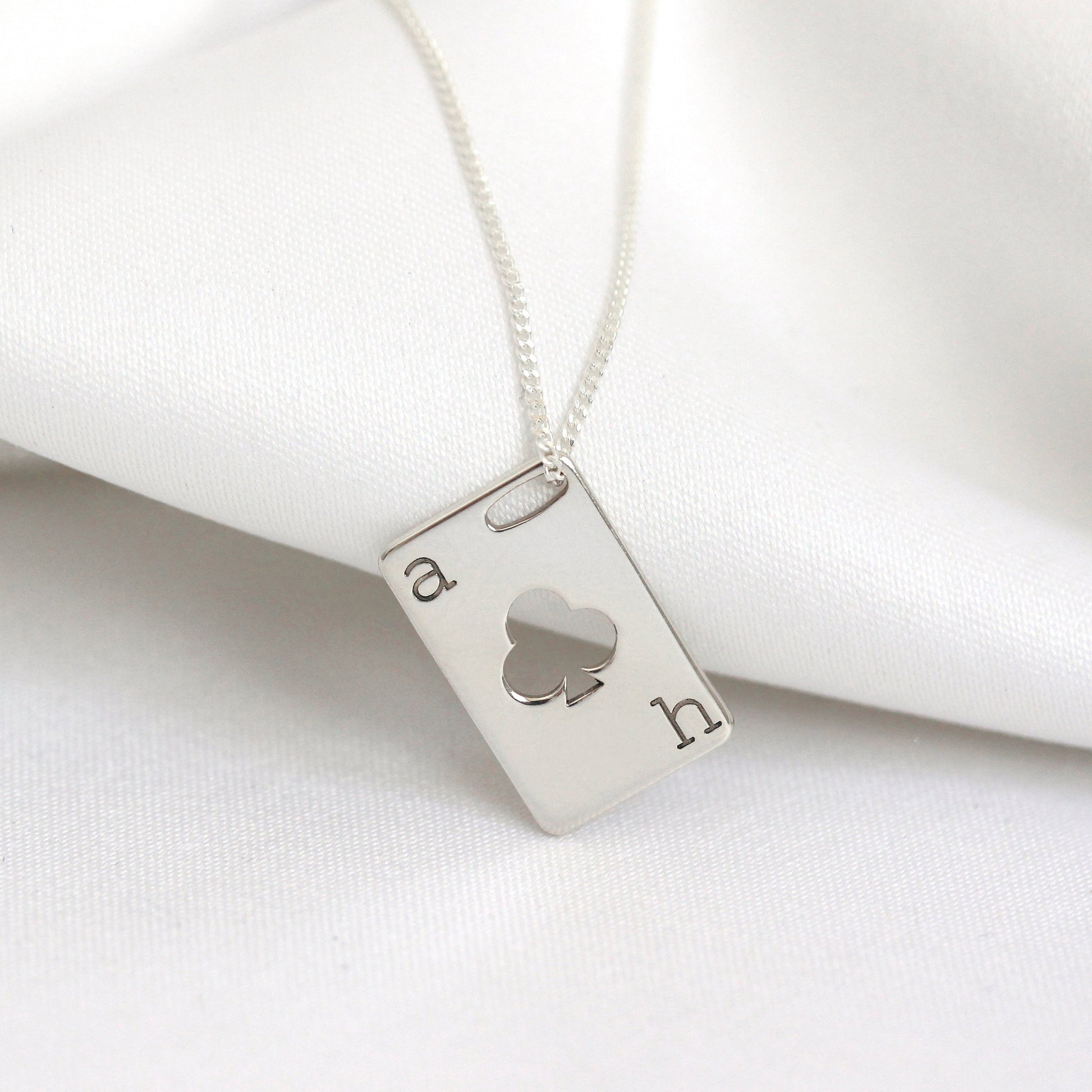 Collier personnalisé en argent sterling avec initiales de carte à jouer