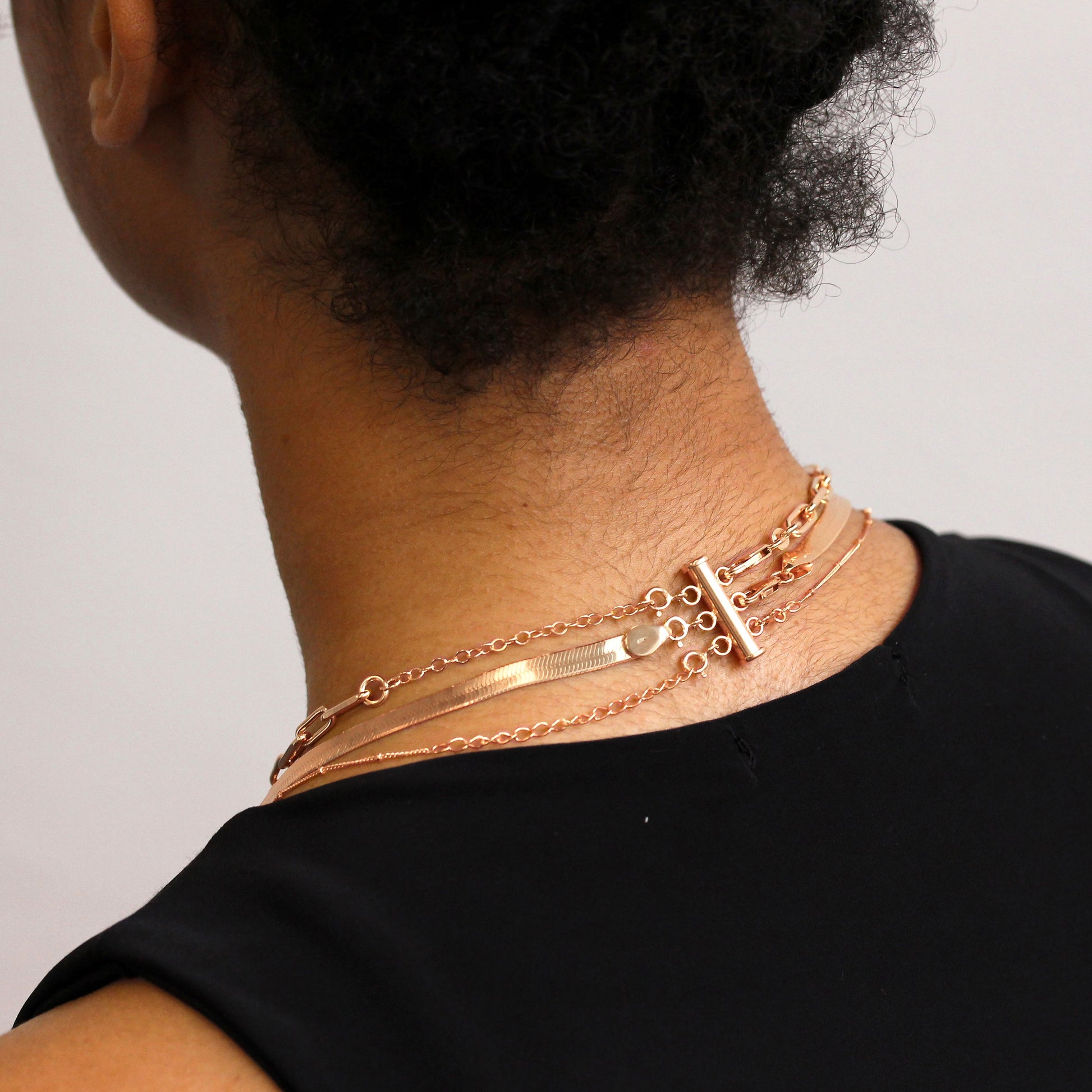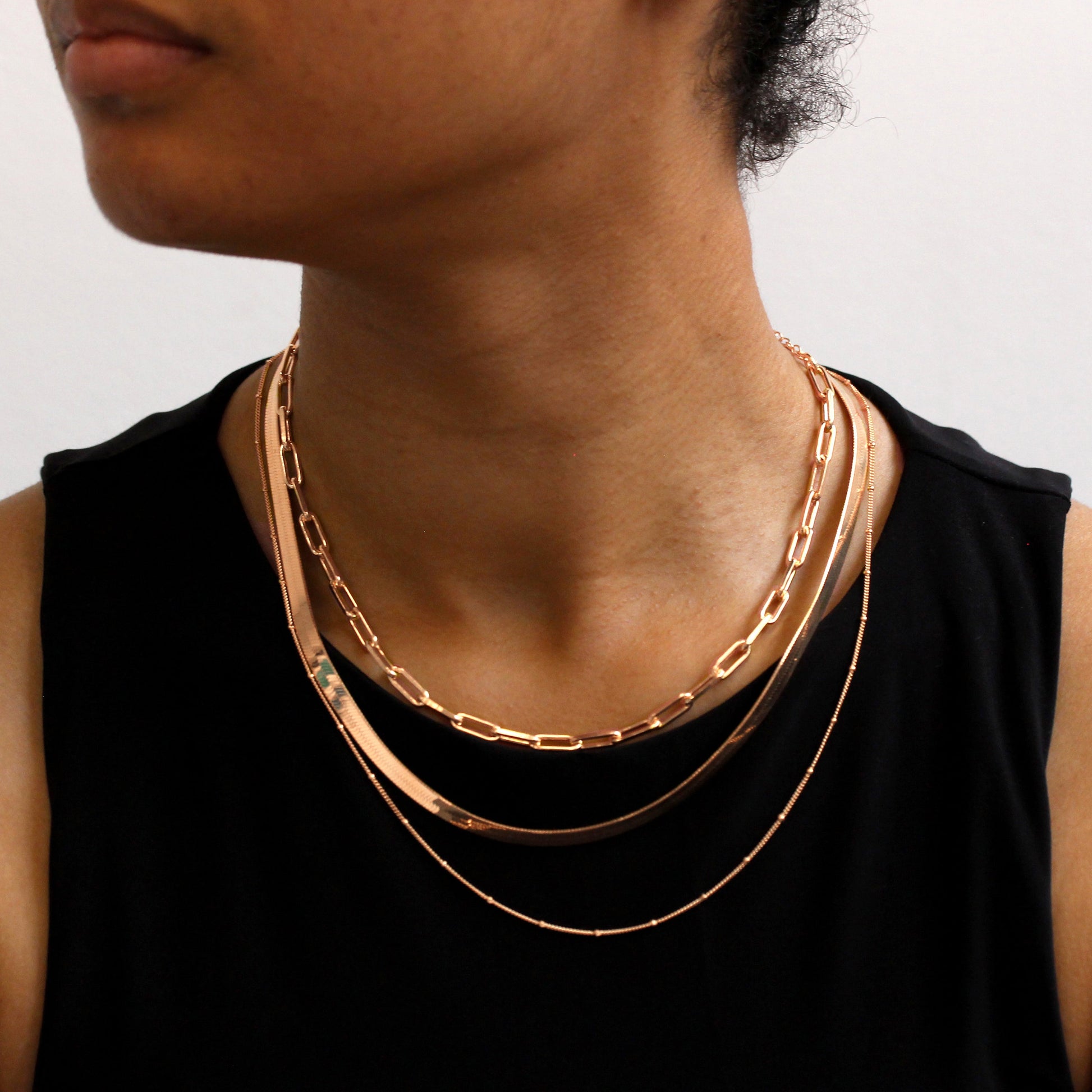 Collier à 3 rangs en argent sterling plaqué or rose