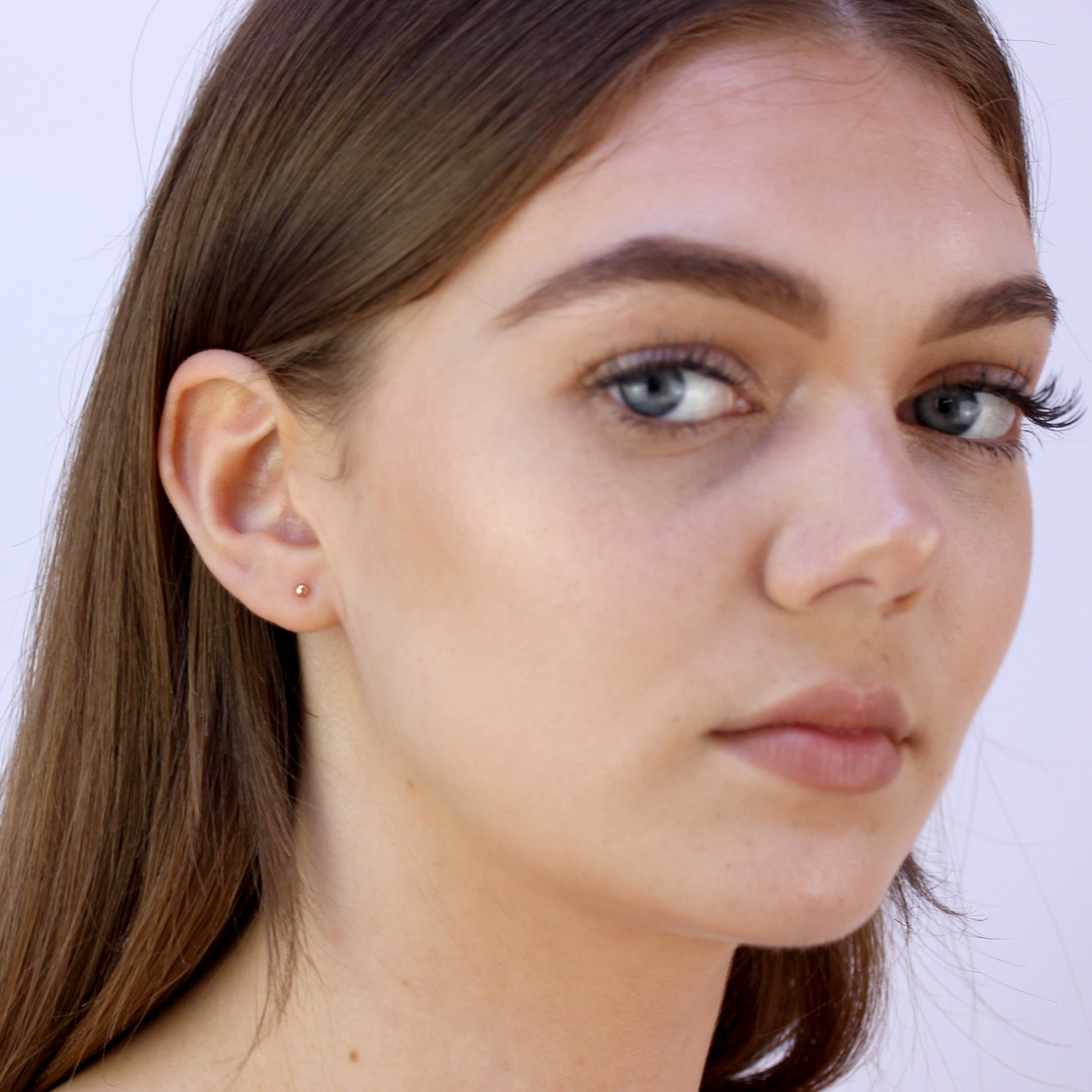 Boucles d'oreilles à tige en argent sterling plaqué or rose avec boule de 3 mm
