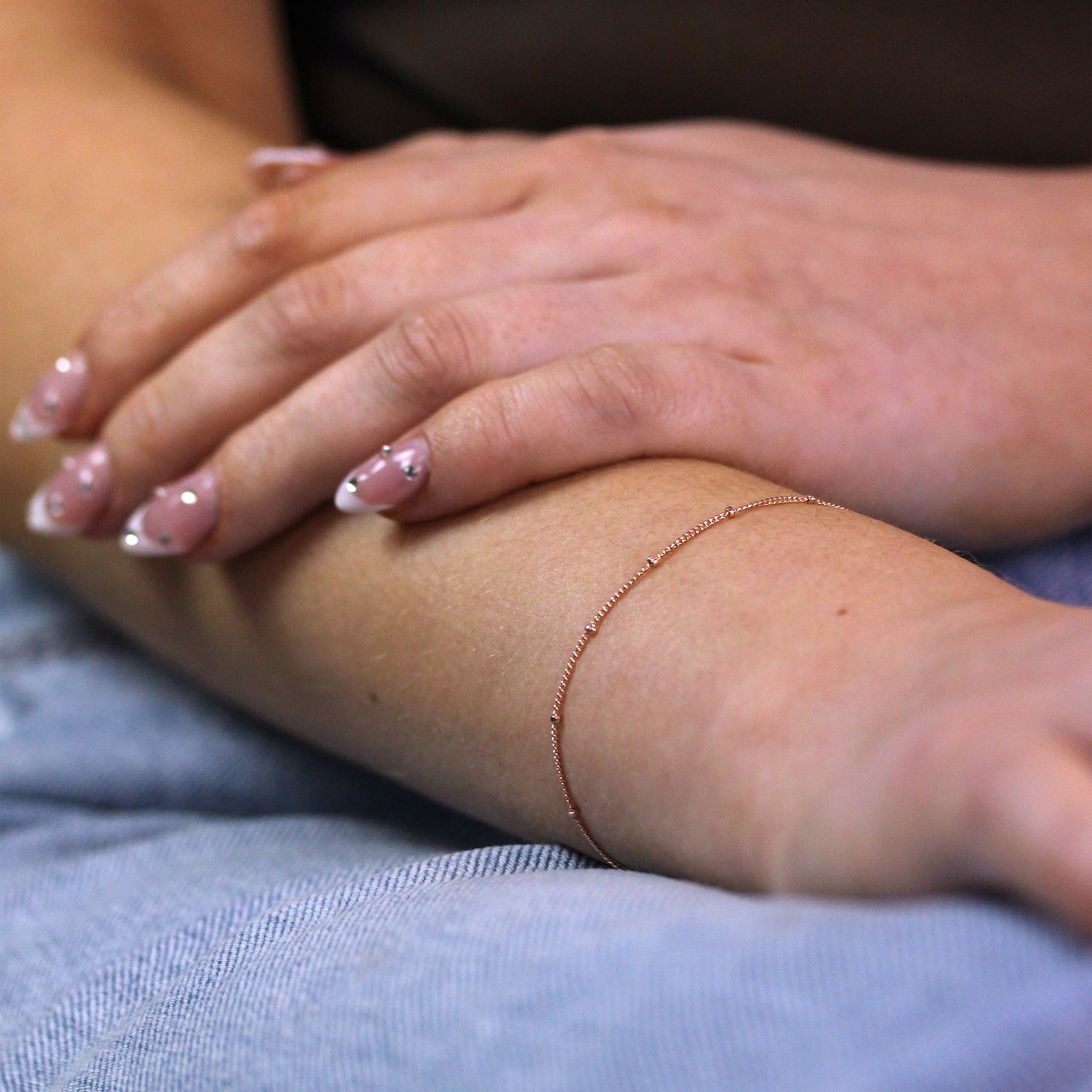 Bracelet gourmette en argent sterling plaqué or rose avec perles taillées en diamant