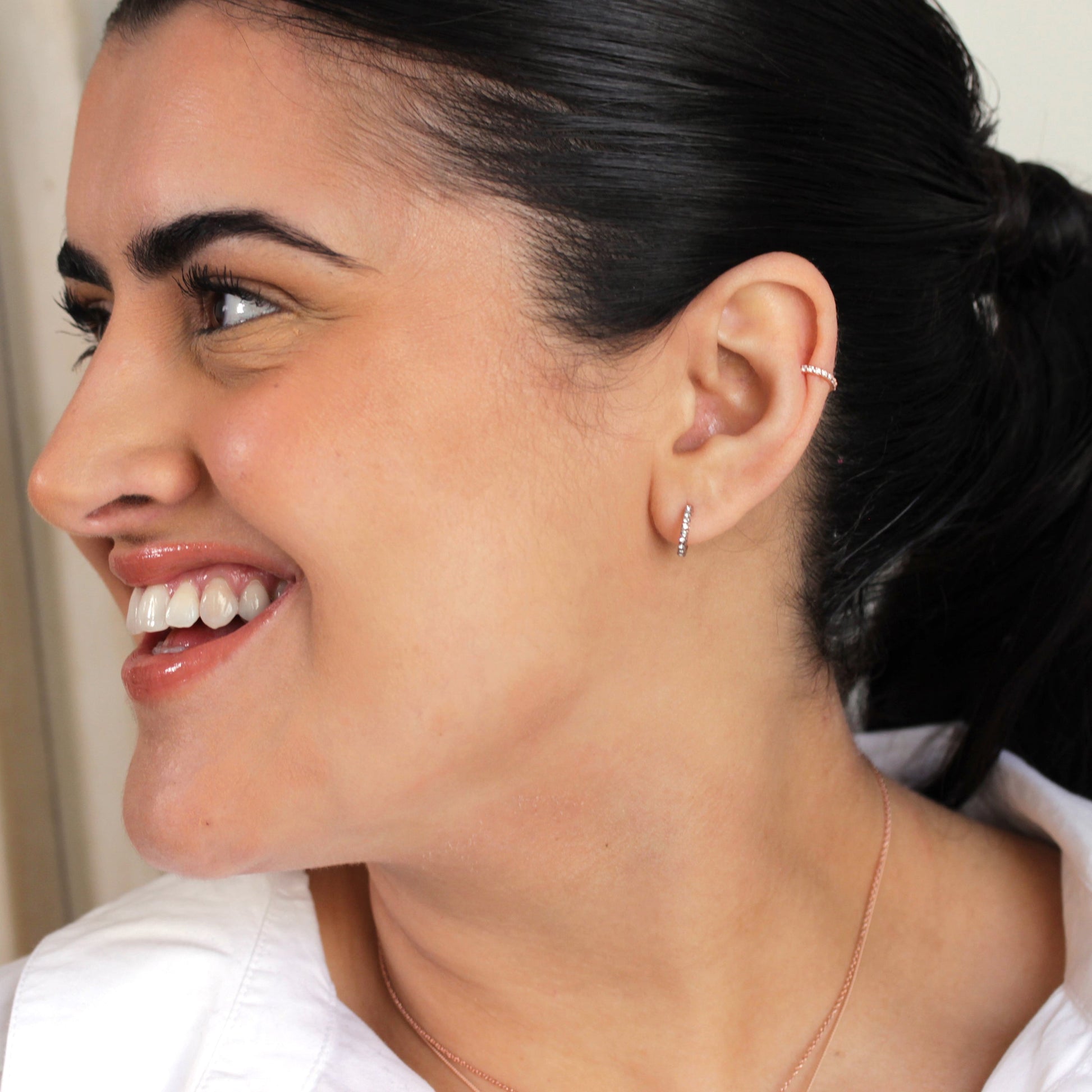 Boucles d'oreilles à tige ouvertes en argent sterling plaqué or rose et zircones cubiques de 10 mm