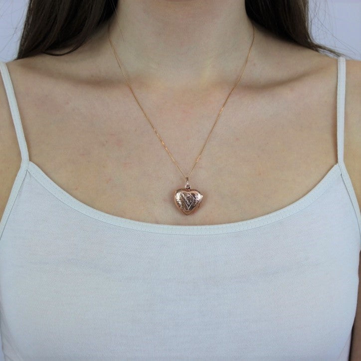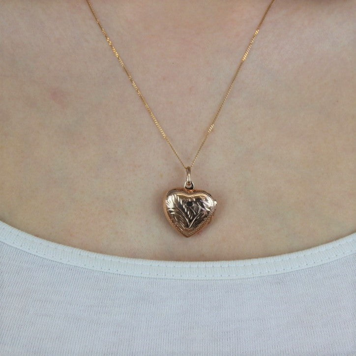 Médaillon en argent sterling plaqué or rose avec cœur gravé, 40 à 55 cm