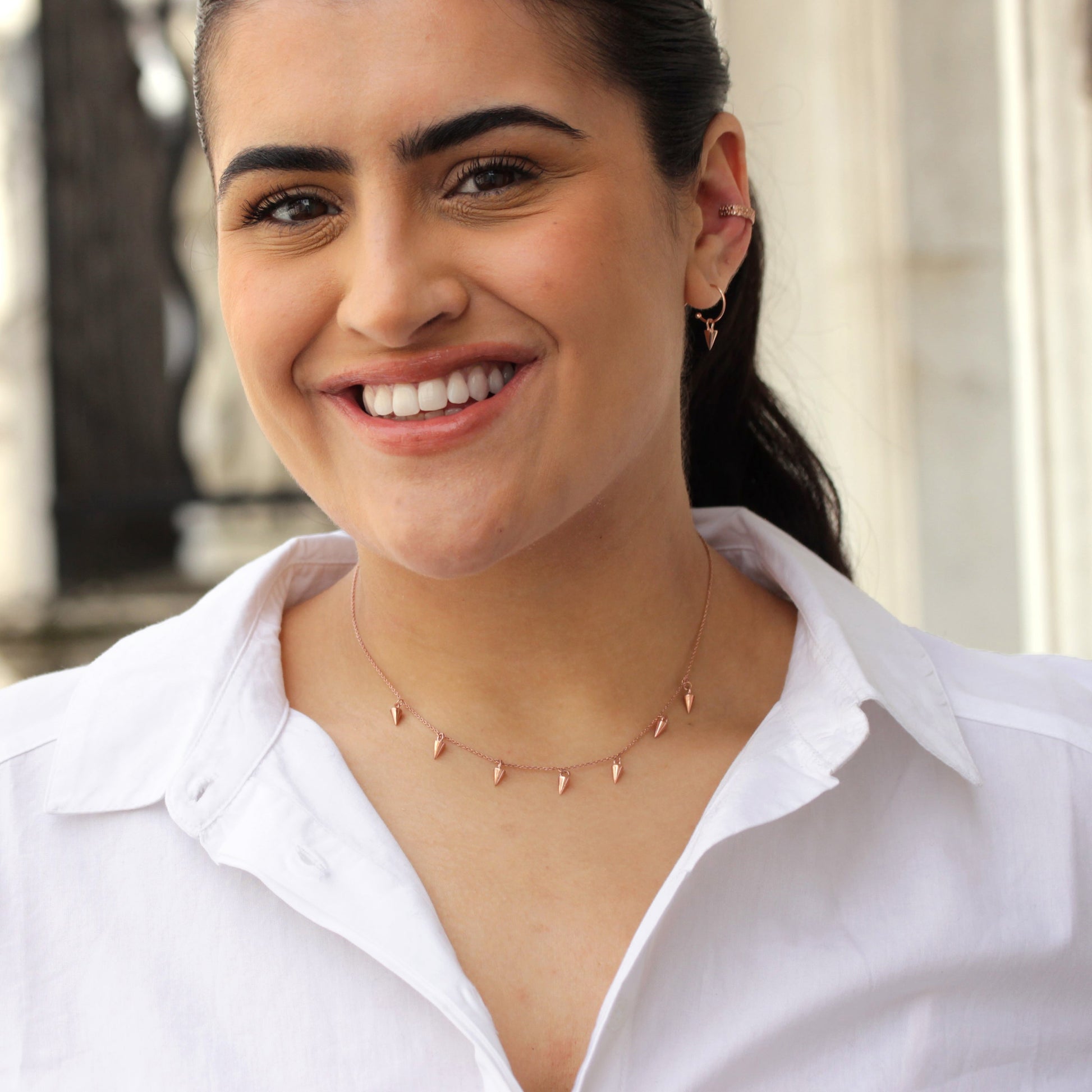 Collier multi-pointes en argent sterling plaqué or rose de 40 cm