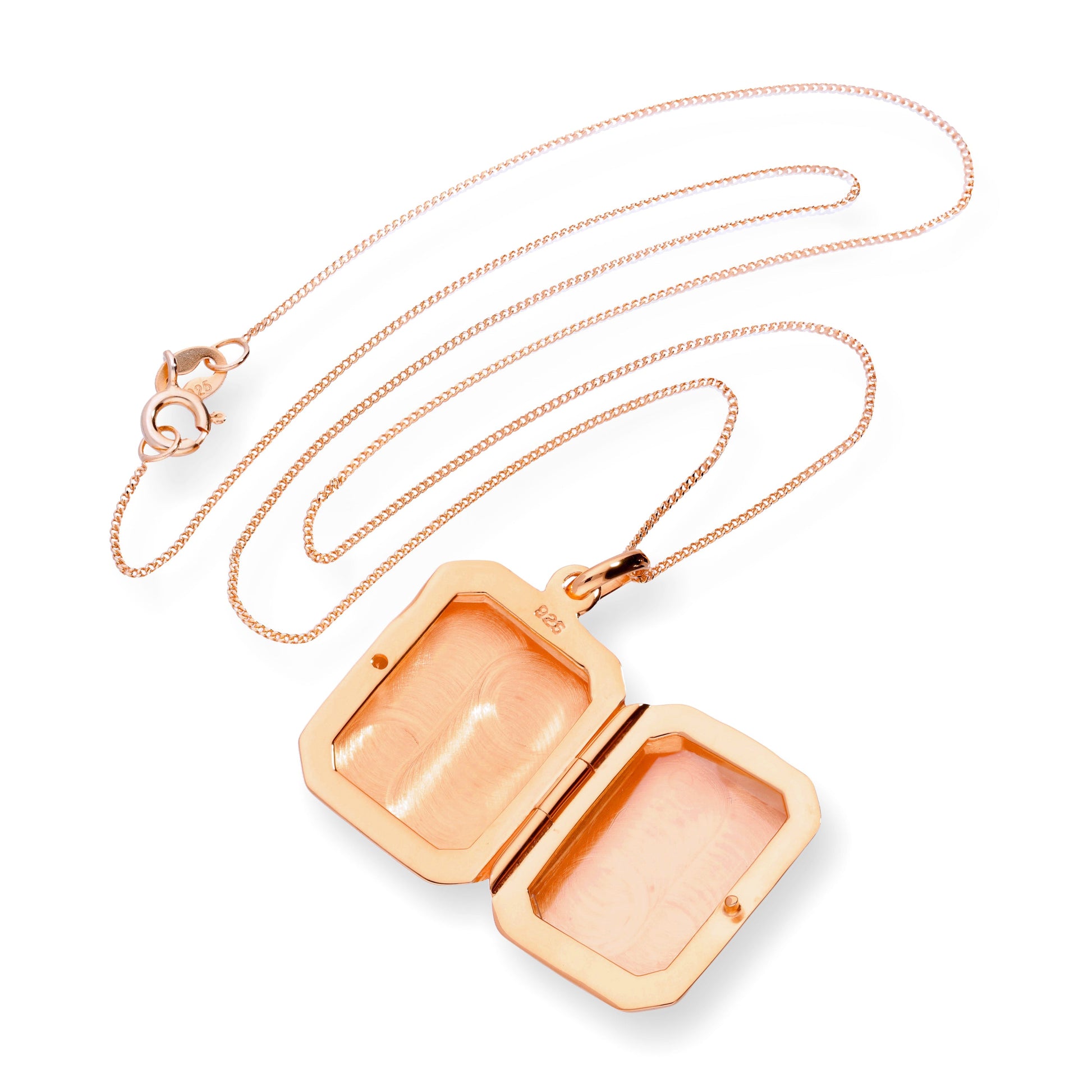 Médaillon octogonal gravé en argent sterling plaqué or rose de 40 à 55 cm