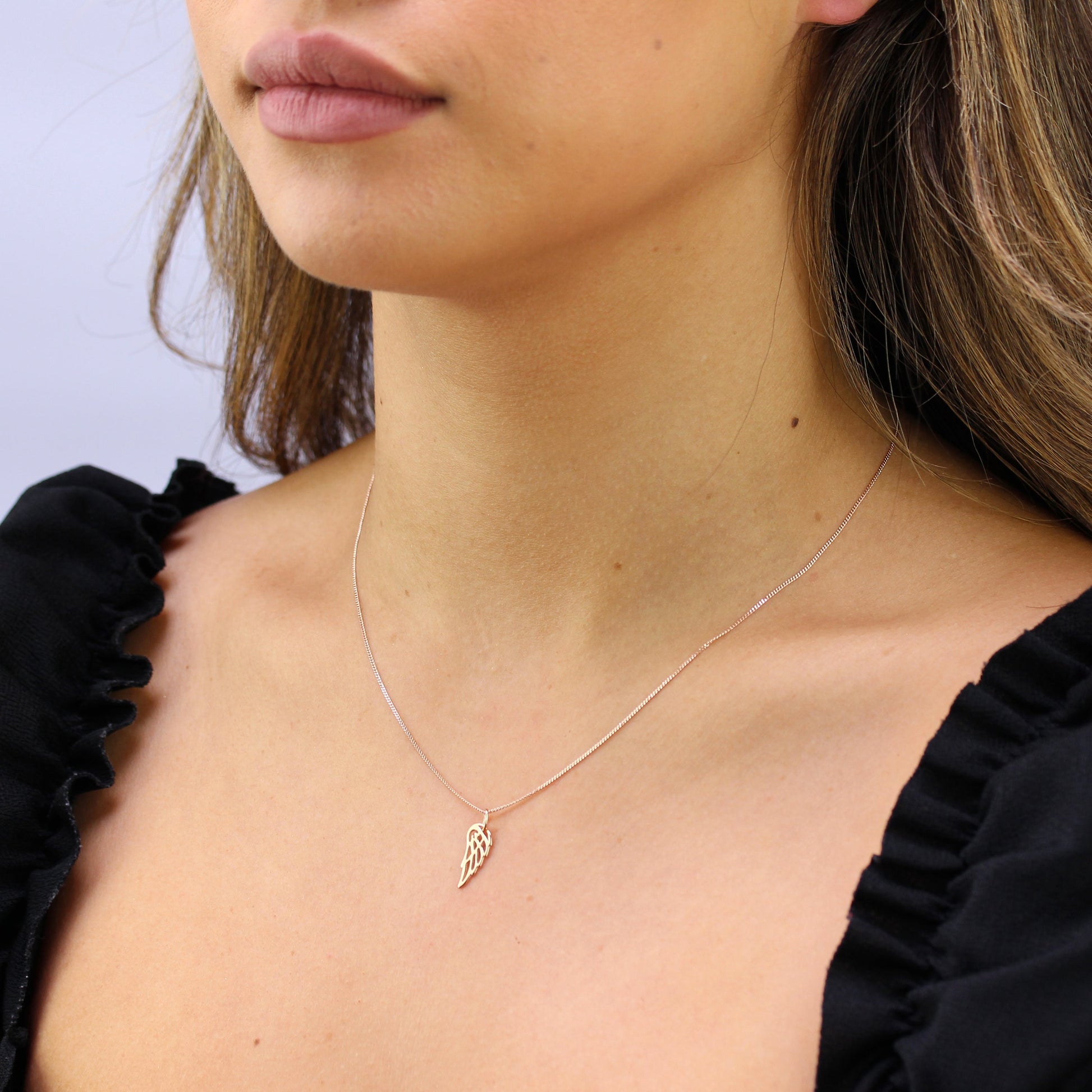 Aile d'ange ouverte en argent sterling plaqué or rose de 14 à 32 pouces