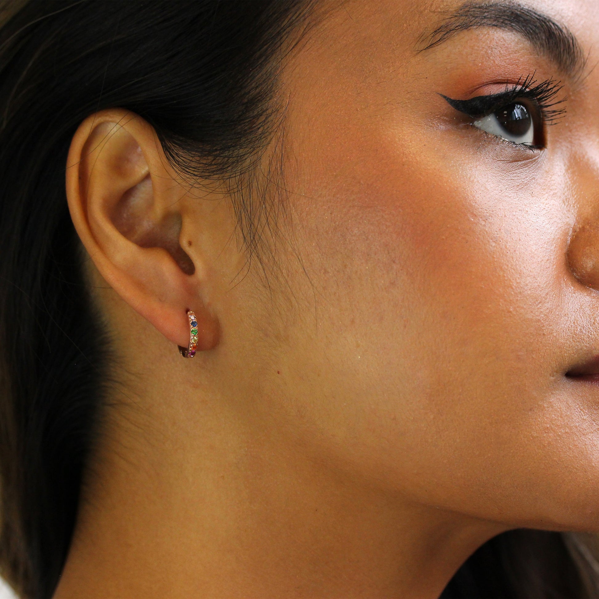 Boucles d'oreilles créoles en argent sterling plaqué or rose et cristal arc-en-ciel