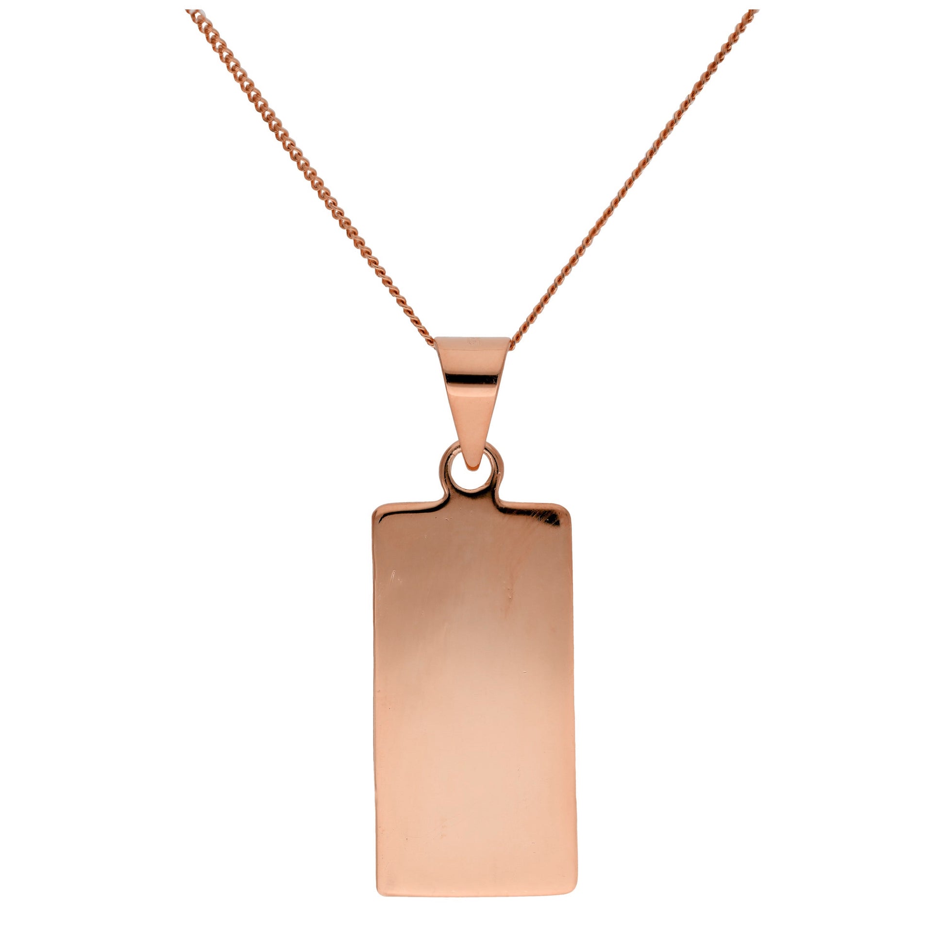 Collier rectangulaire en argent sterling plaqué or rose, gravable, 14 à 32 pouces