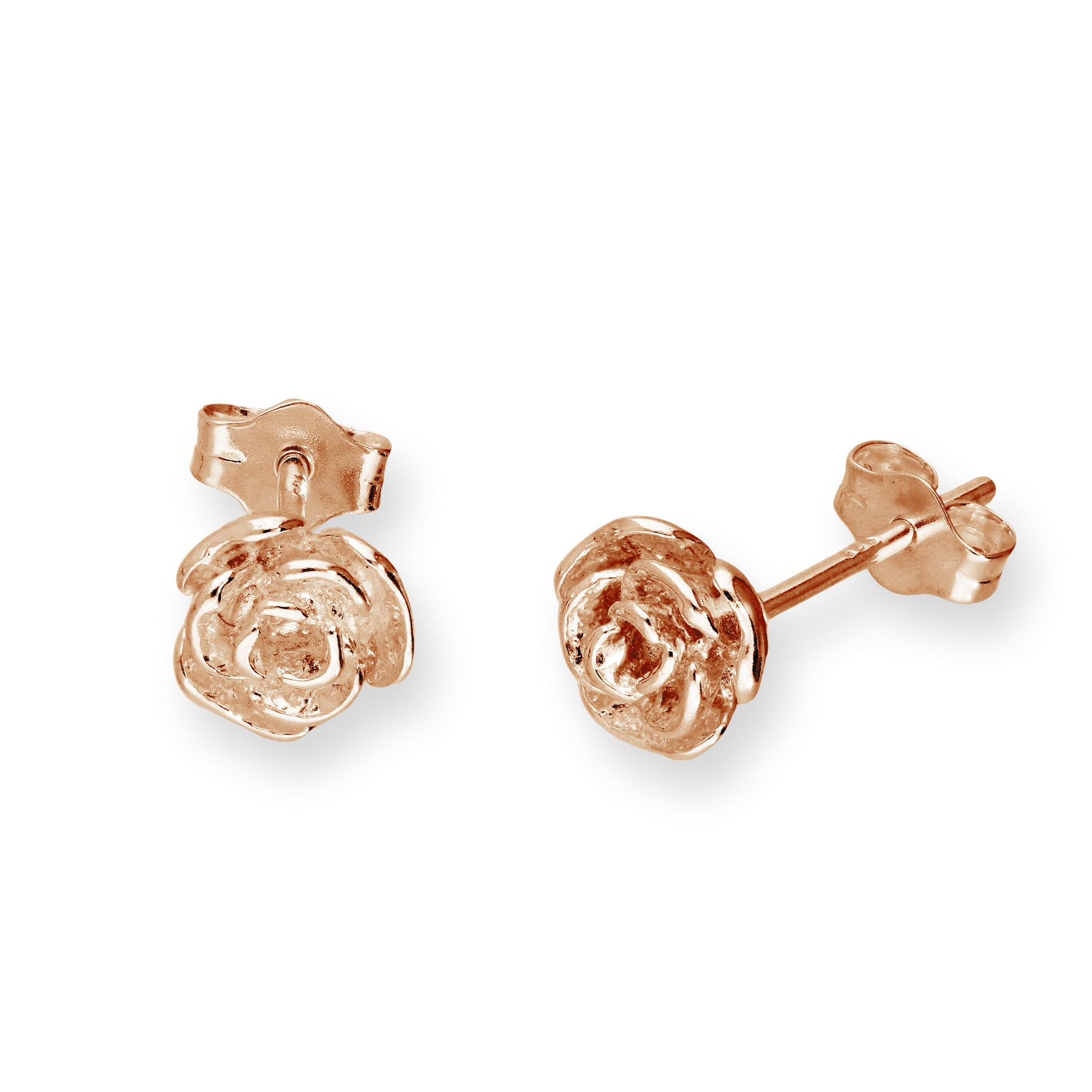 Boucles d'oreilles à tige en argent sterling plaqué or rose et bouton de rose