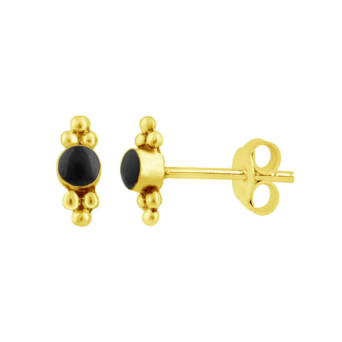 Petites boucles d'oreilles à tige en argent sterling plaqué or avec perles noires