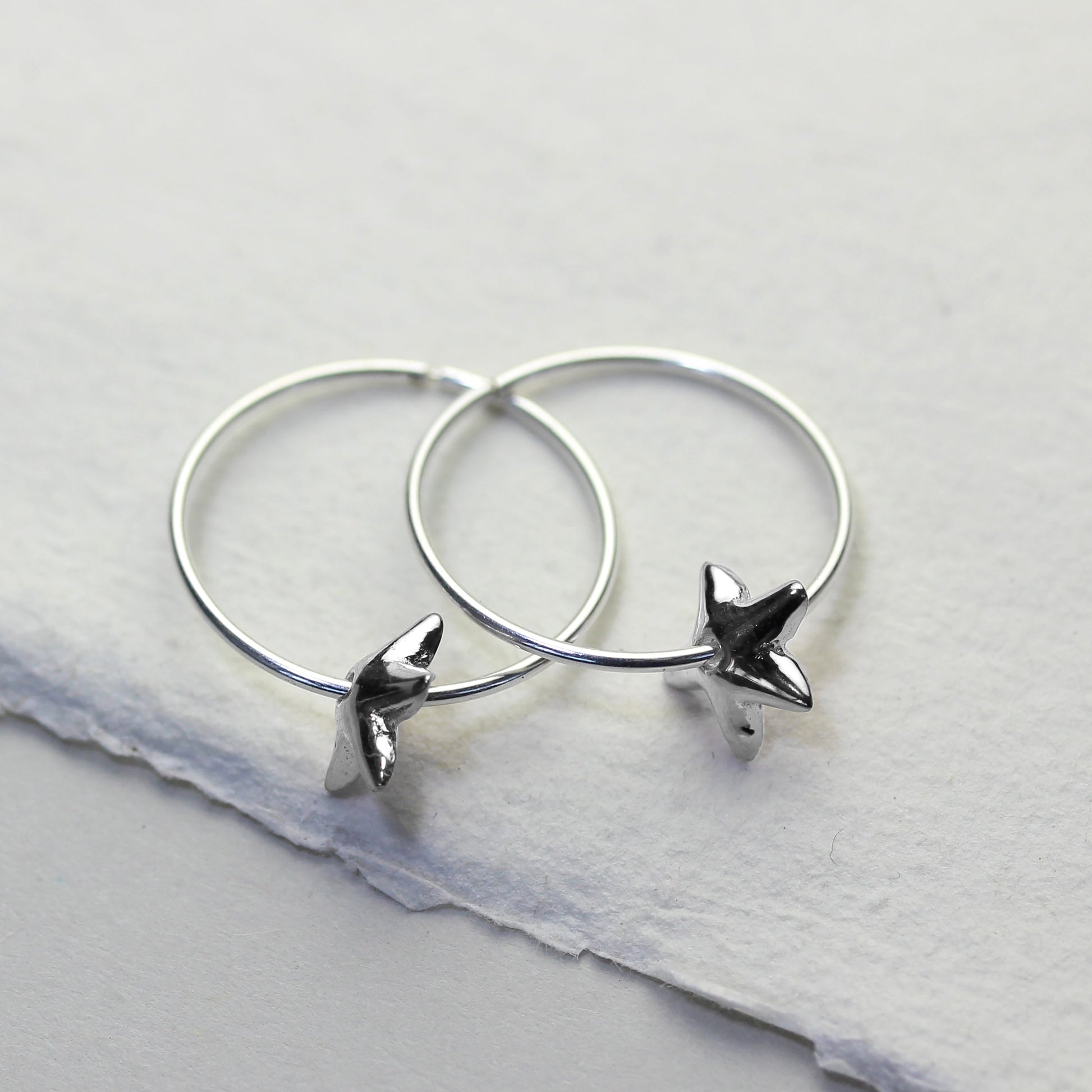 Boucles d'oreilles créoles en argent sterling de 18 mm avec breloques en forme de fleur de lys