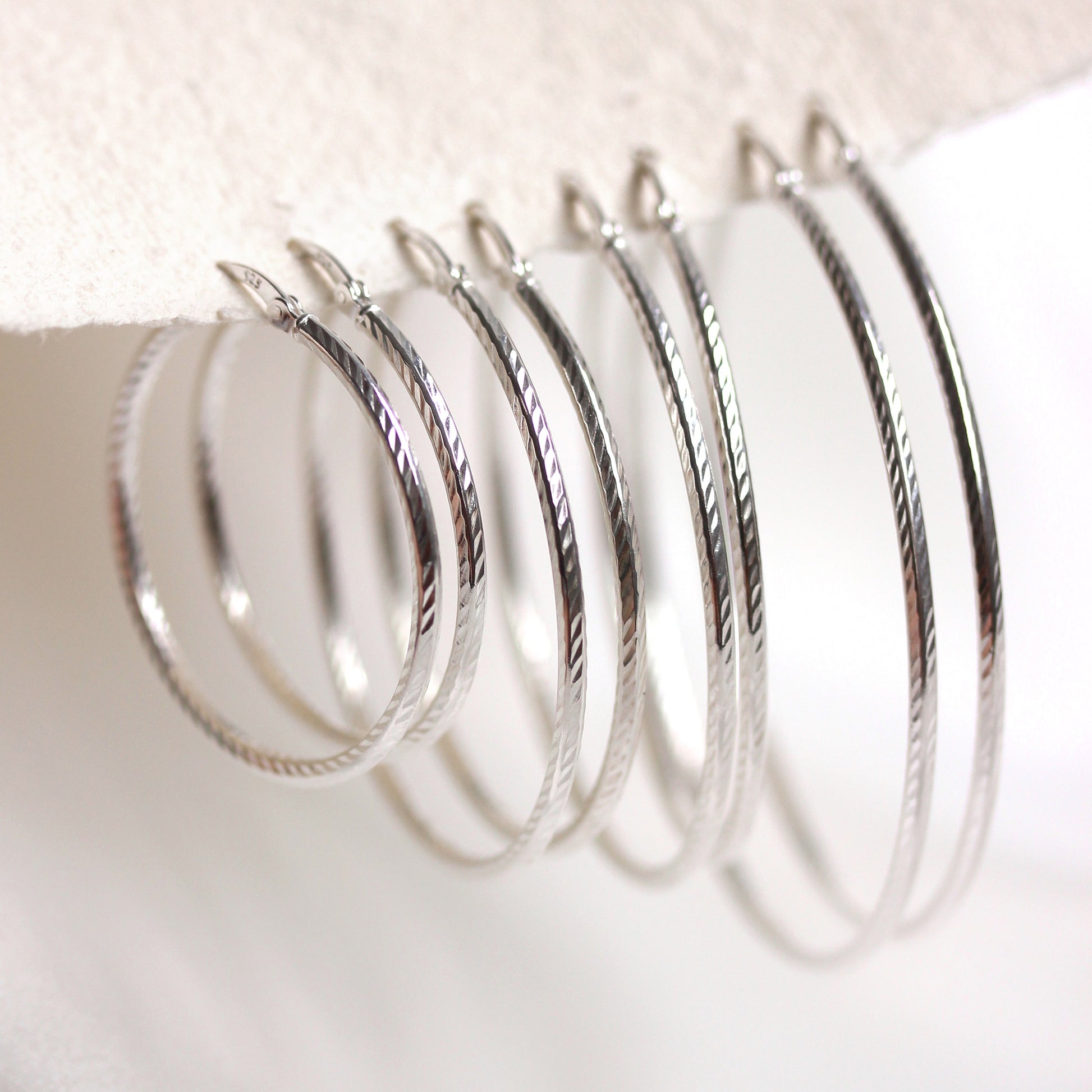 Boucles d'oreilles créoles torsadées en argent sterling, tube de 2 mm, taille diamant, 35 mm - 60 mm