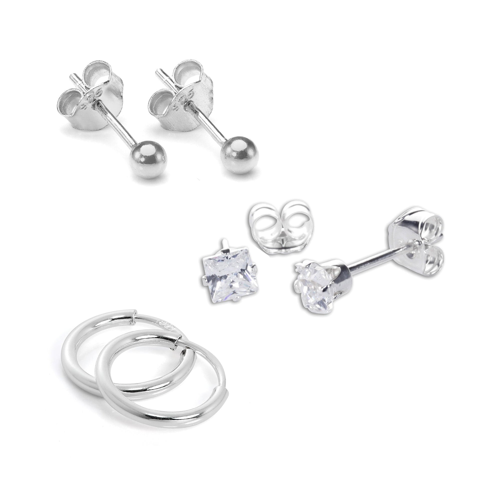 Lot de 3 boucles d'oreilles essentielles en argent sterling