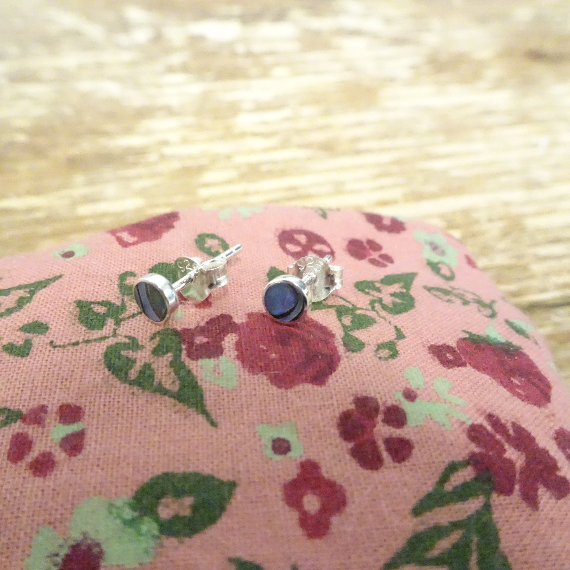 Boucles d'oreilles à tige en argent sterling et ormeau rond de 4 mm