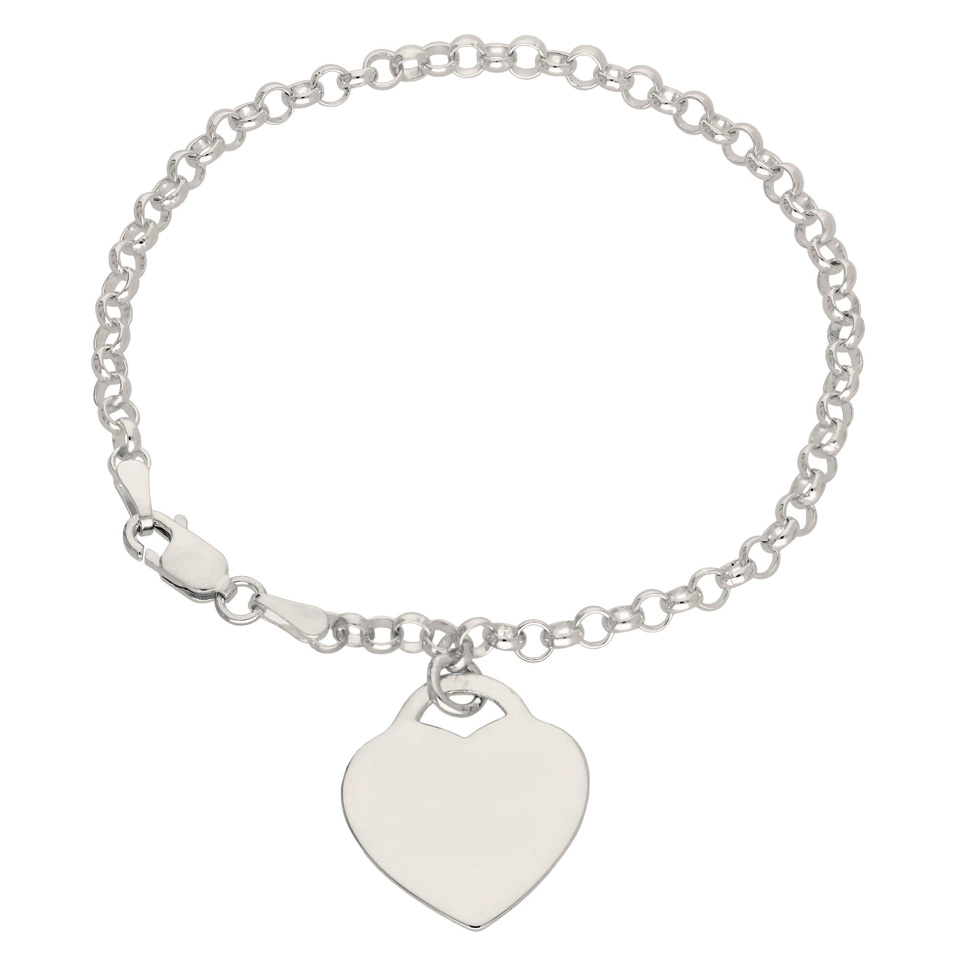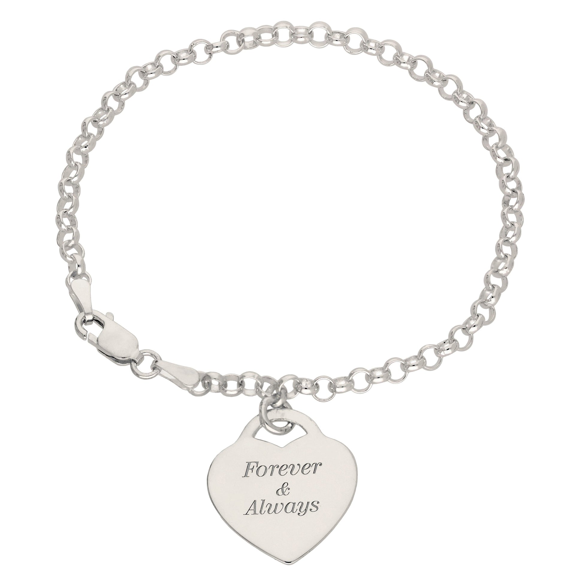Bracelet en argent sterling de 18 cm avec cadenas gravé en forme de cœur