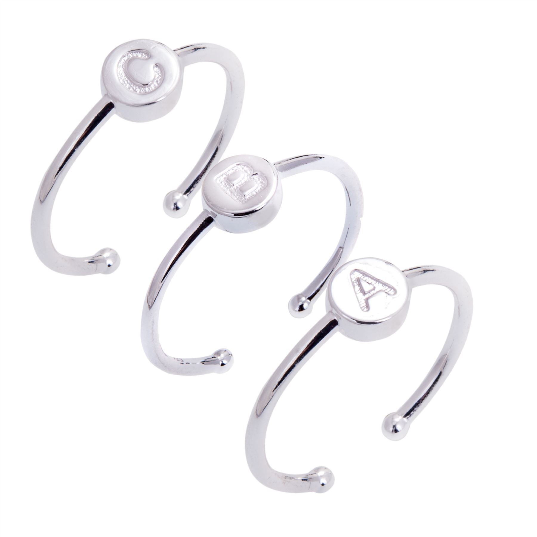 Bagues coulissantes en argent sterling avec lettres de l'alphabet
