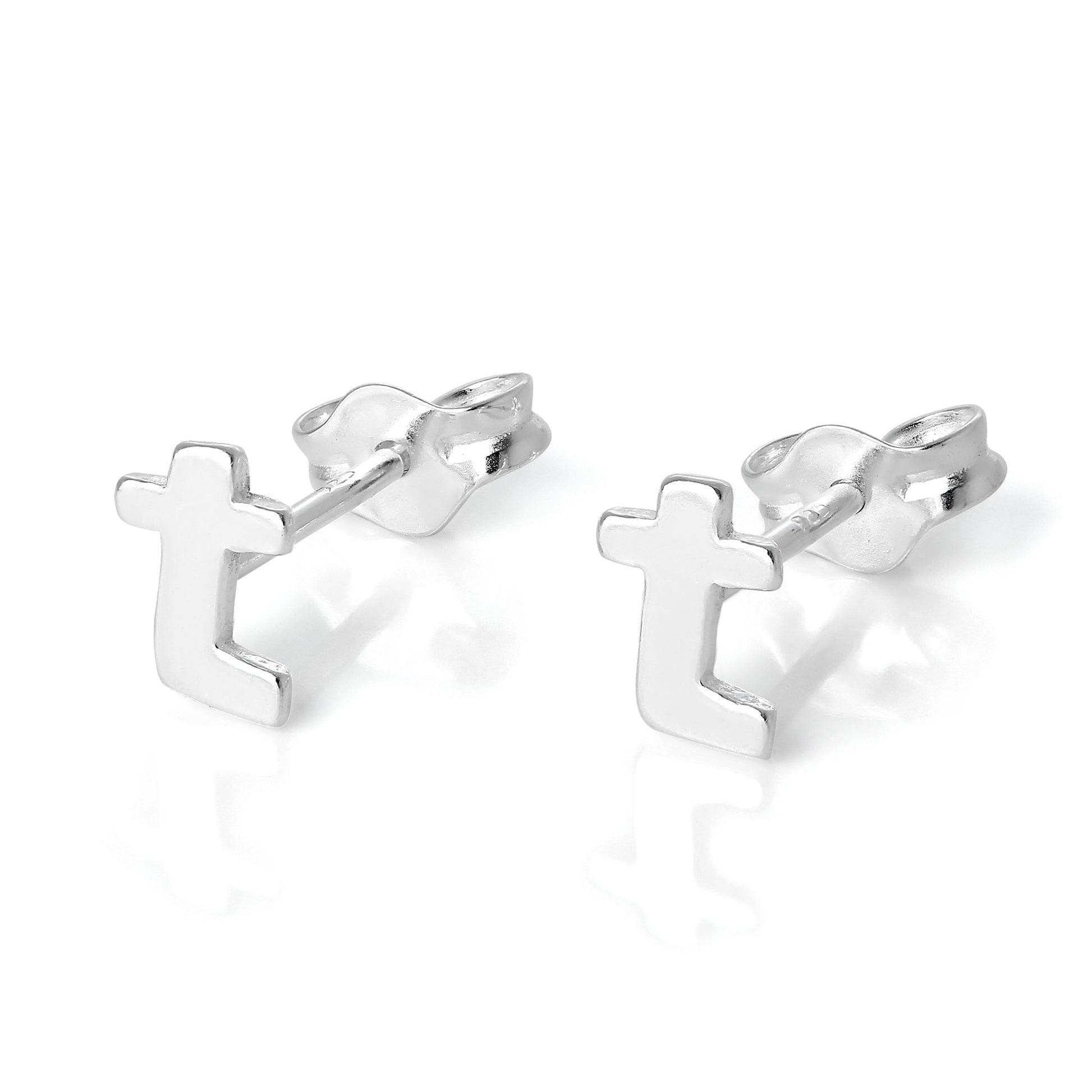 Boucles d'oreilles à tige en argent sterling avec lettres de l'alphabet