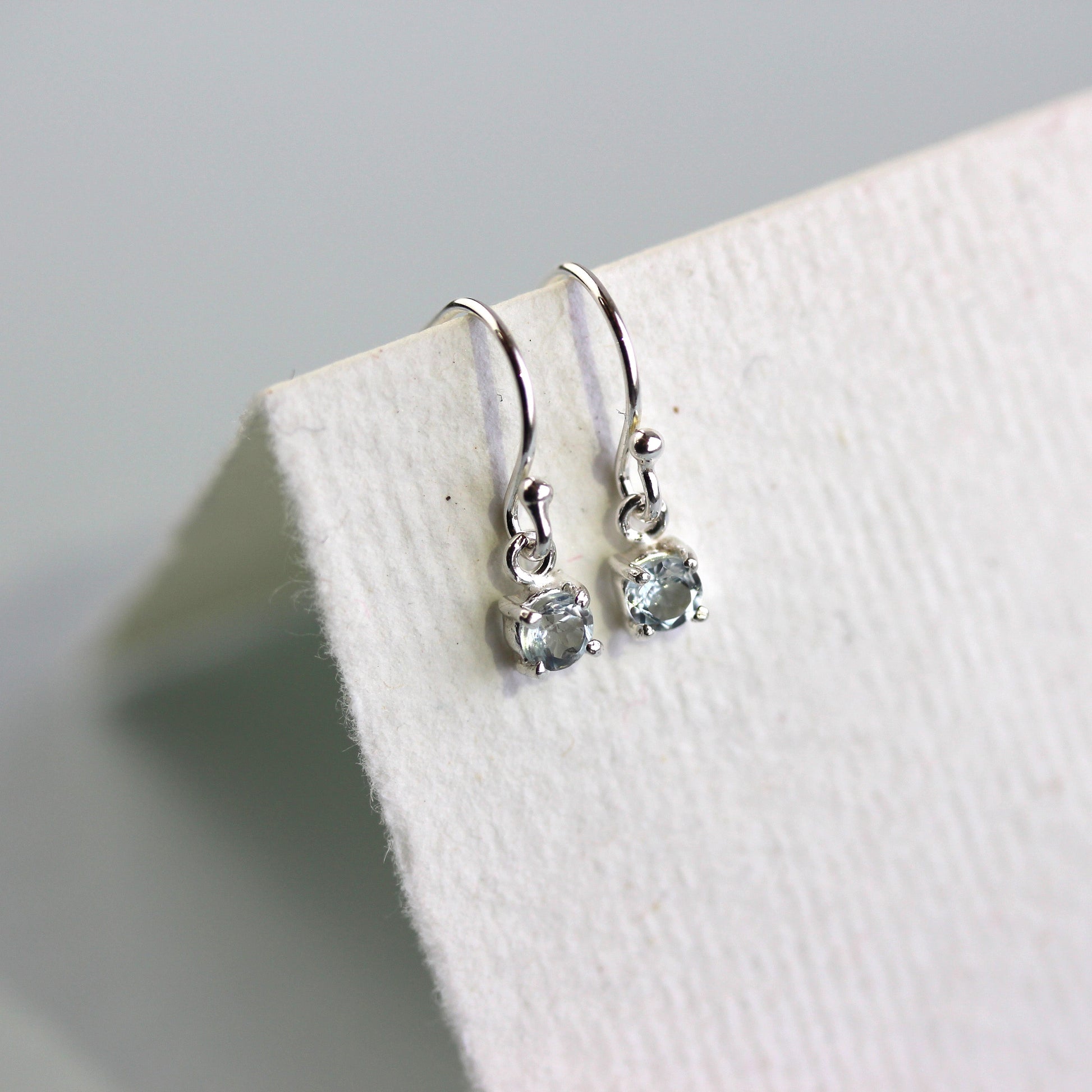 Boucles d'oreilles pendantes en argent sterling avec aigue-marine et zircone cubique, pierre de naissance de mars