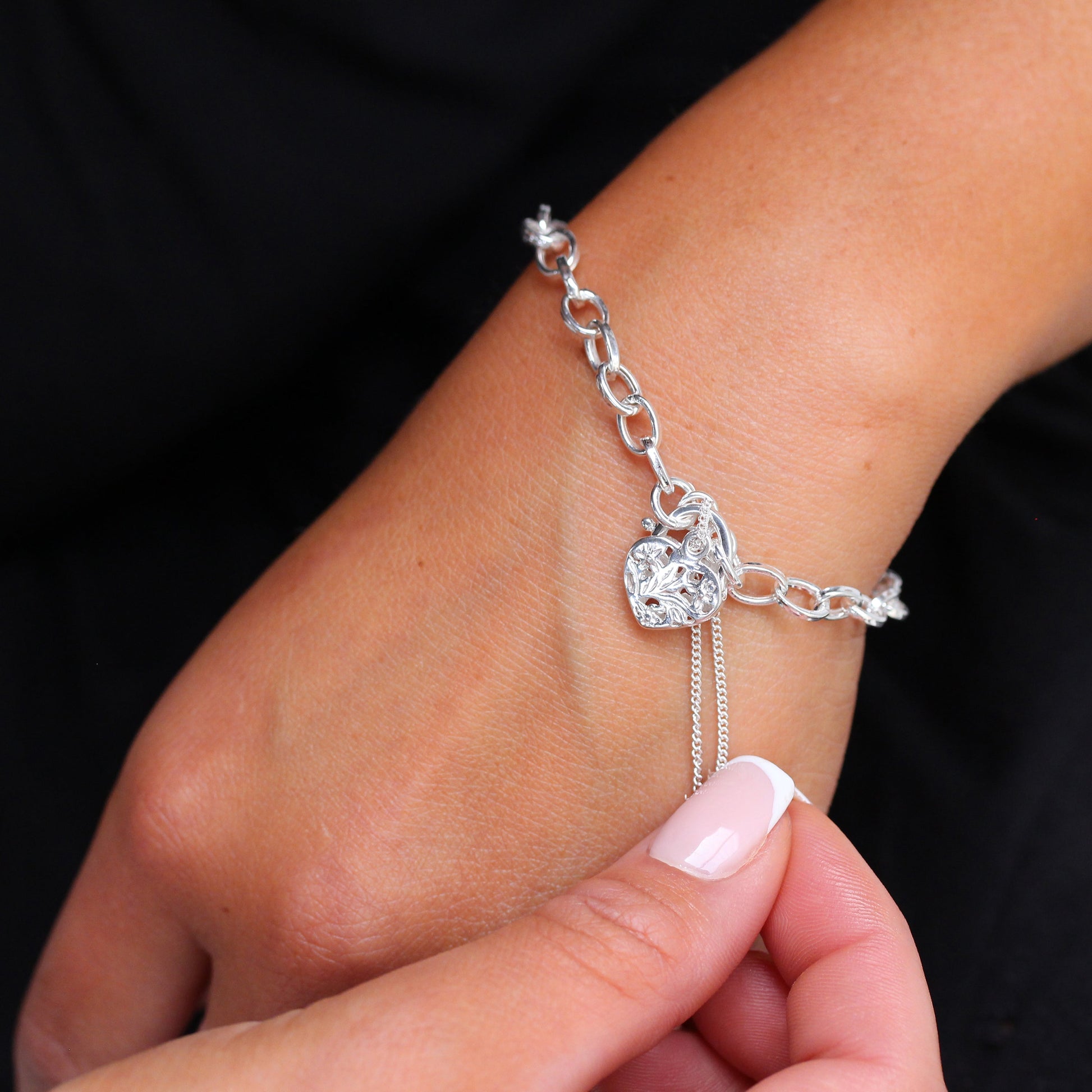 Bracelet à breloques en argent sterling avec cadenas en forme de cœur, 15 à 20 cm