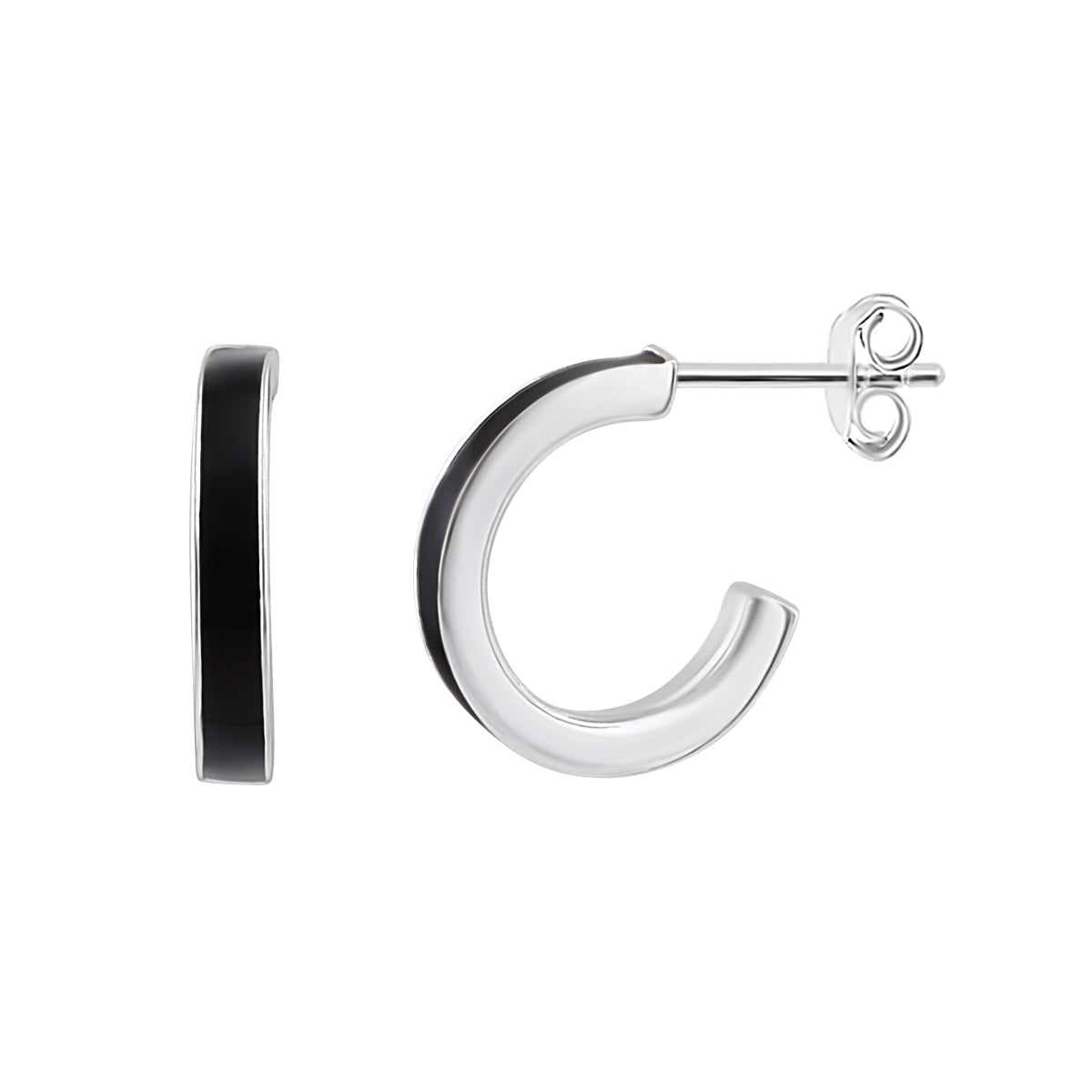 Boucles d'oreilles créoles ouvertes noires en argent sterling de 13 mm