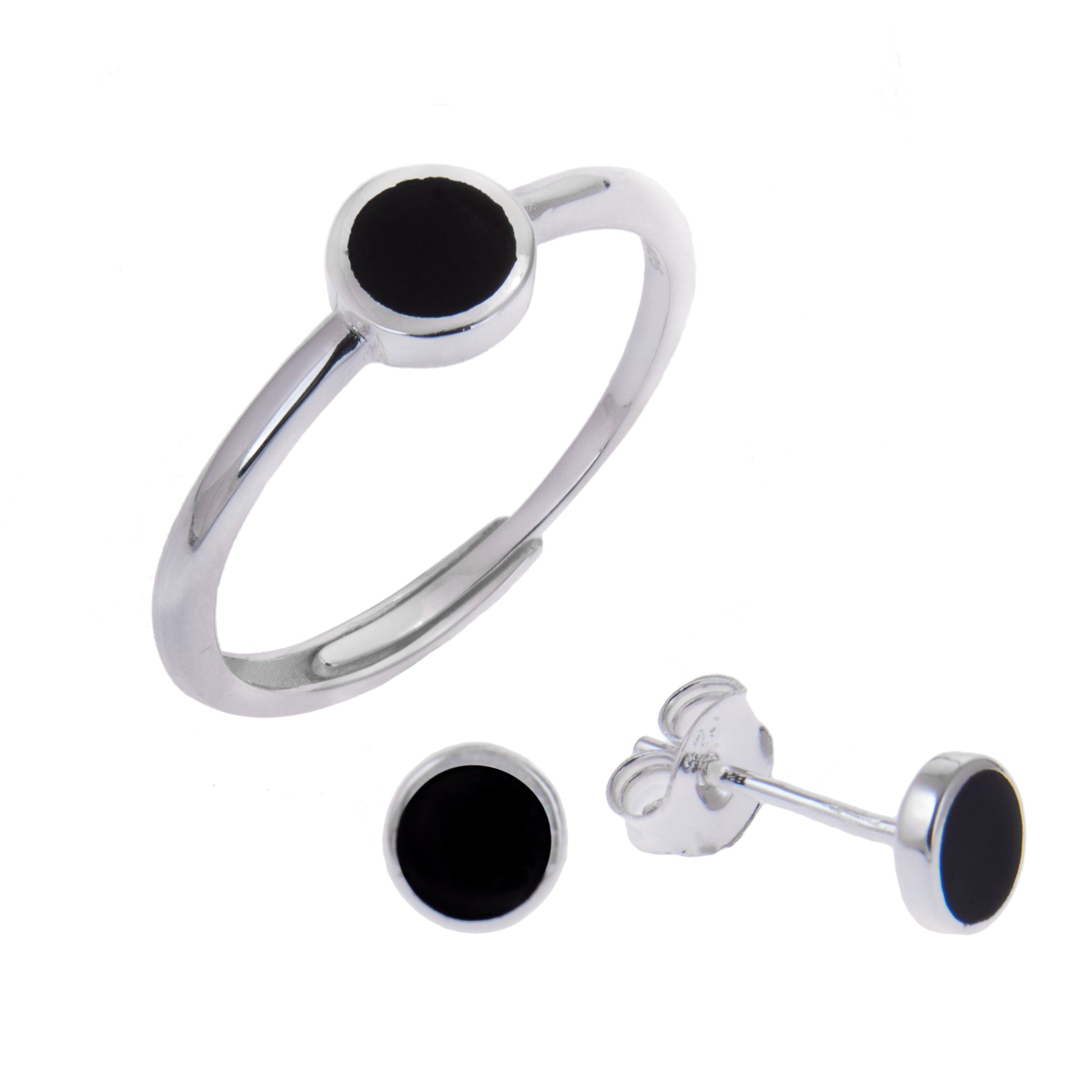 Ensemble de boucles d'oreilles à tige minimalistes en argent sterling et émail noir et bague réglable
