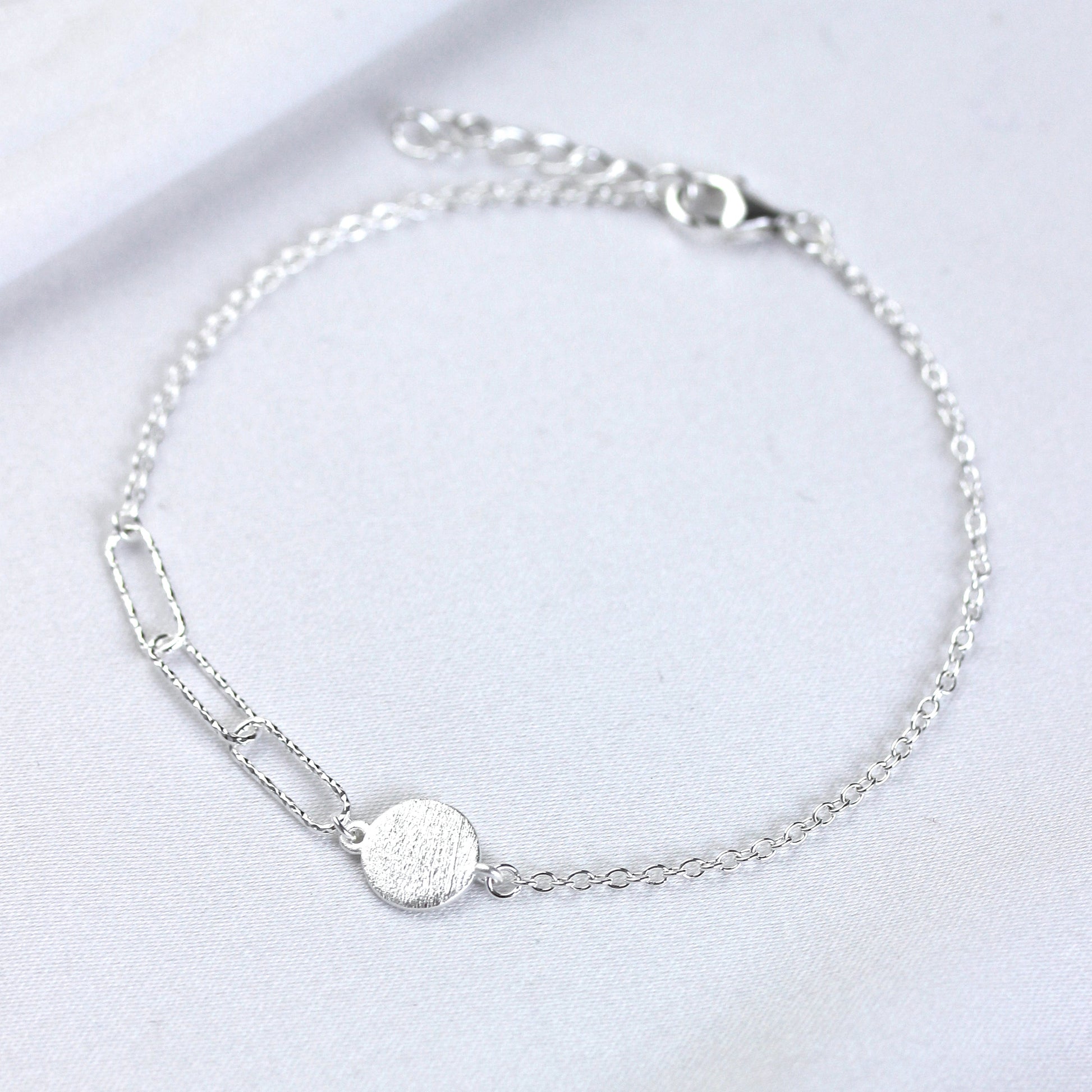 Bracelet à maillons longs en argent sterling brossé et gravable