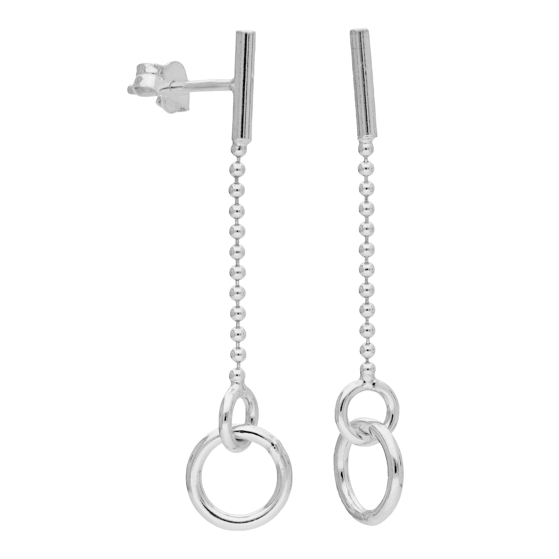 Boucles d'oreilles pendantes à chaîne perlée en argent sterling avec barre circulaire